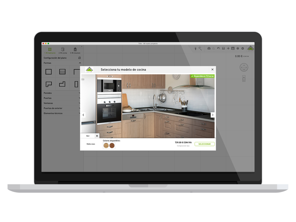 Con el planificador de cocinas 3D podrás crear una cocina desde cero y hasta el último detalle en tan solo 3 pasos. Recuerda que para ello debes estar registrado.