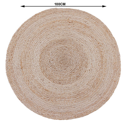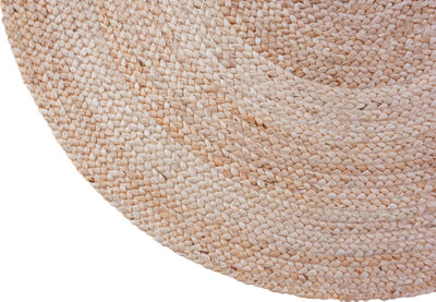 Alfombra hecha a mano en yute, fibra natural 100% ecológica, biodegradable, duradera y reciclable. De color natural y tacto suave, aporta serenidad y un aire rústico a tus estancias de interior. Resulta especialmente práctica en salones, comedores y dormitorios gracias a su tamaño, resistencia y capacidad aislante del frío o el ruido. Es fácil de aspirar por su textura plana. Medidas: 100 cm de diámetro.