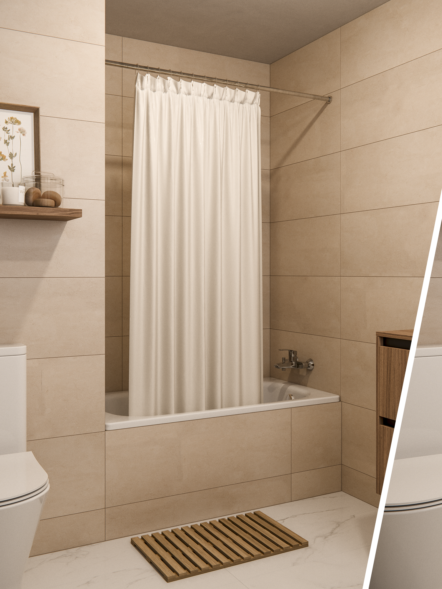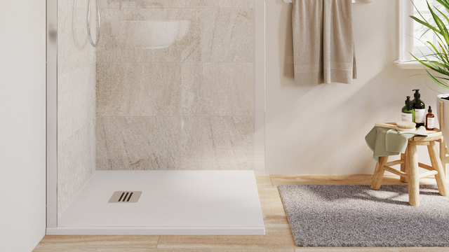 Es aconsejable que busques para tu plato de ducha materiales que incluyan tratamiento antibacteriano y que sean de fácil limpieza. También es preferible que tenga la mayor clasificación antideslizante (C3). Y, si es posible, evita superficies muy porosas que acumulen suciedad o moho.