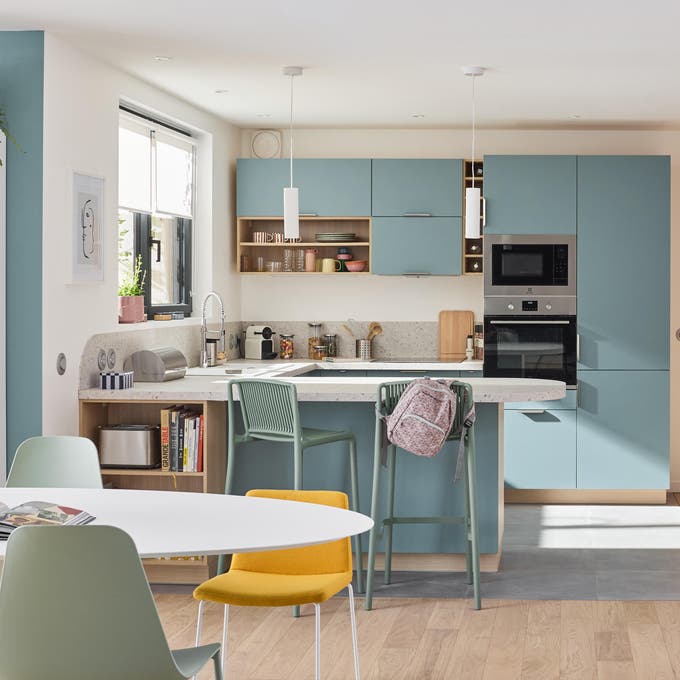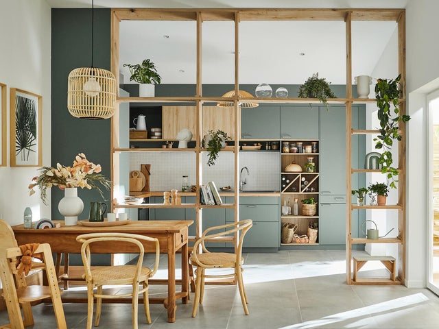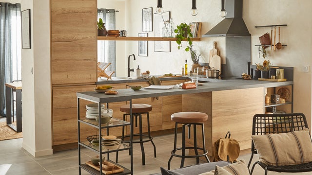 En LEROY MERLIN te ayudamos a dar forma a tu cocina americana, tanto si necesitas una reforma con derribo de tabiques como si quieres instalar una isla, península o barra que conecte visualmente los espacios o solo actualizar el mobiliario.