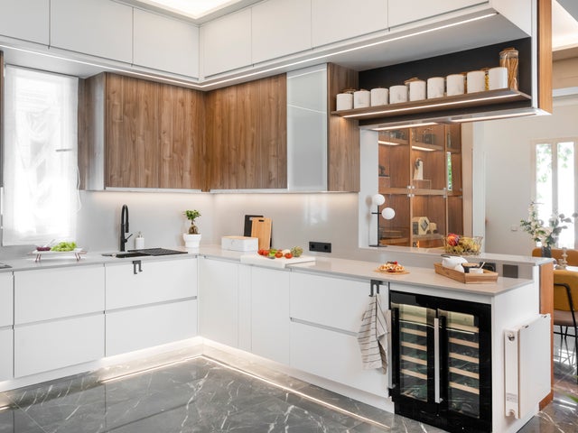 • Muebles de cocina modulares o a medida, con acabados de tendencia y opciones para islas o penínsulas.