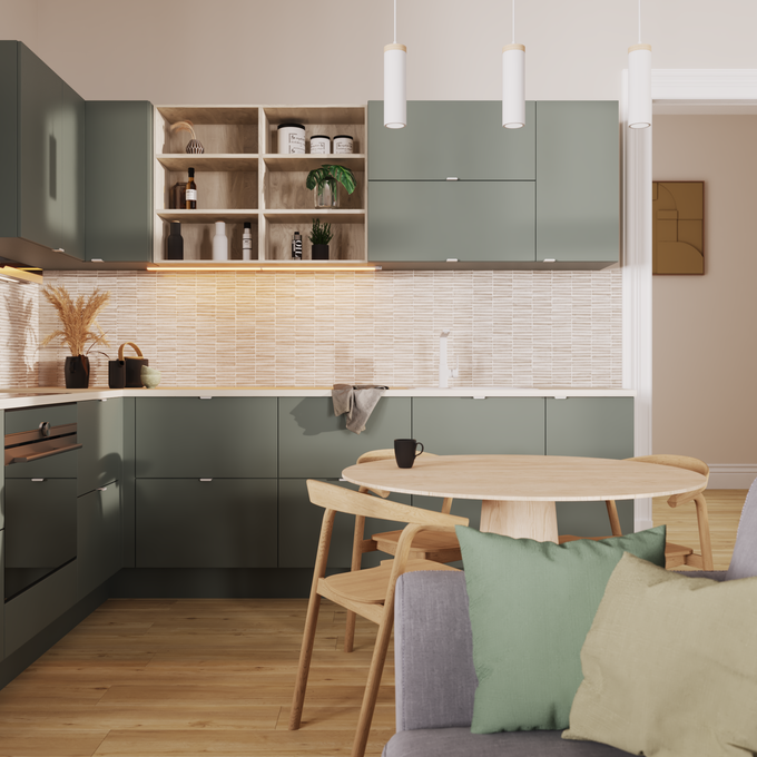 • Diseño flexible: permite integrar islas, barras o penínsulas según el tamaño del espacio.