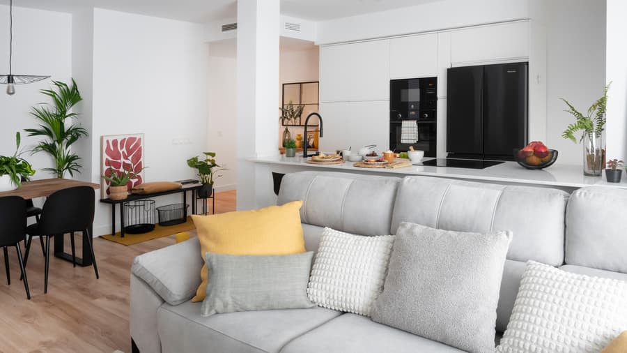 • Decoración unificada: salón, comedor y cocina comparten un mismo estilo, más armónico y contemporáneo.
