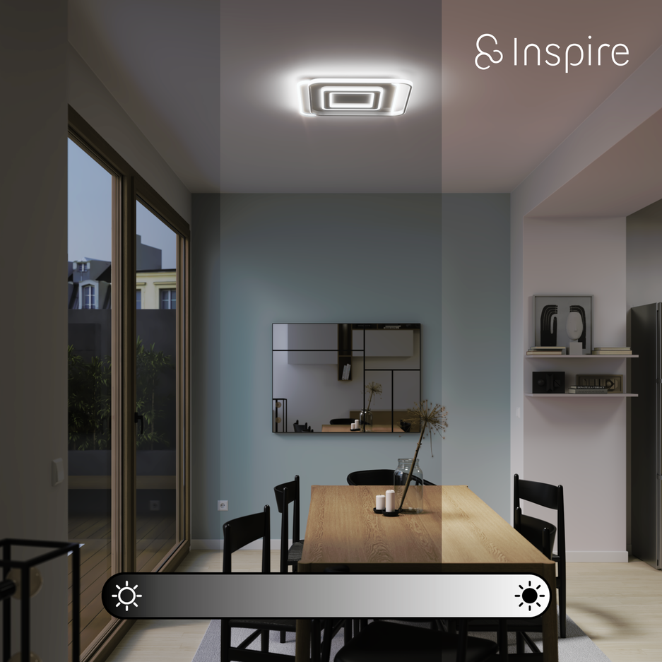 Modelos como el plafón LED Emingo de Inspire permiten regular tanto la intensidad como la temperatura de color, desde el blanco cálido al blanco frío, Si prefieres un diseño más clásico, el plafón LED Modica de Inspire con forma redonda y acabado blanco brillante, también incluye mando a distancia para ajustar la temperatura y la intensidad de la luz.