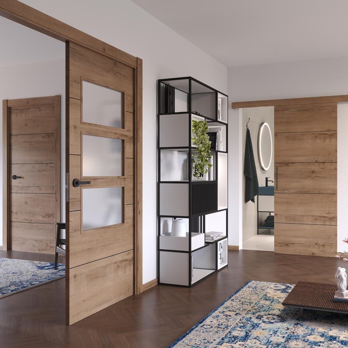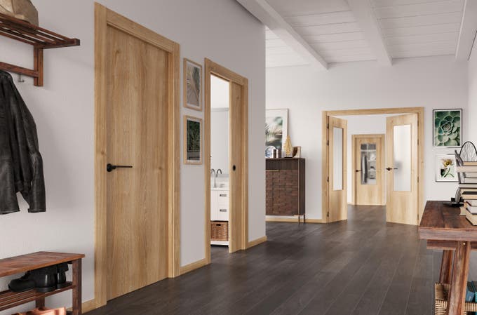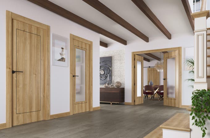 Las puertas que están integrándose en multitud de casas son las de roble. Sus tonos medios -más oscuros que otras maderas- se están imponiendo porque crean atmósferas acogedoras sin oscurecer el ambiente. Encajan a la perfección en espacios minimalistas, nórdicos, rústicos, industriales...