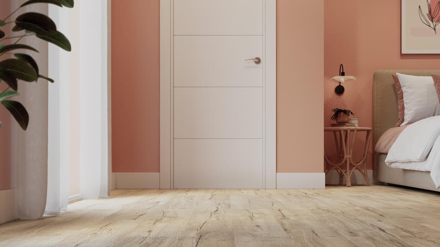 Ejemplo de esta tendencia es la novedosa Serie Mencía de puertas Premium de LEROY MERLIN en madera blanca con veta. Es fácilmente reconocible por la línea que atraviesa la puerta de arriba a abajo. Puedes elegir entre 2 tipos de acabados: con la línea en color dorado o en negro. Ideal para dar un toque muy glamuroso y sofisticado a tu hogar.