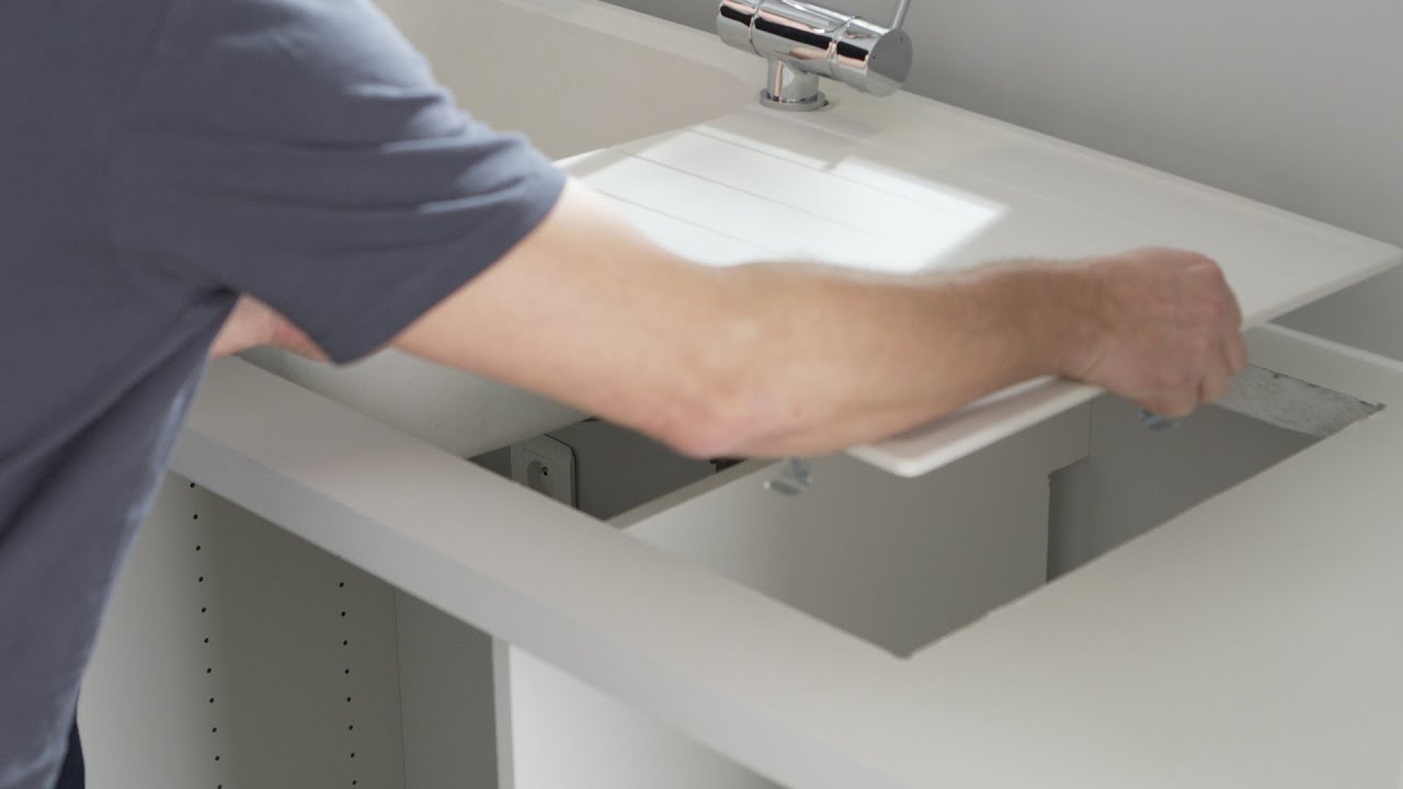 Ahora ya puedes introducir el fregadero en el hueco. Comprueba y ajusta su posición.