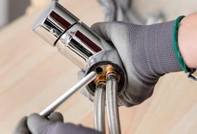 Para fijar el grifo, empieza por montar la conexión del mezclador. Después, hay que fijar el grifo al fregadero.