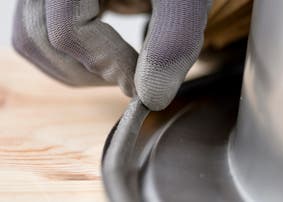 Para evitar filtraciones en la encimera, pasa silicona a lo largo del corte y extiéndela por todo el borde.