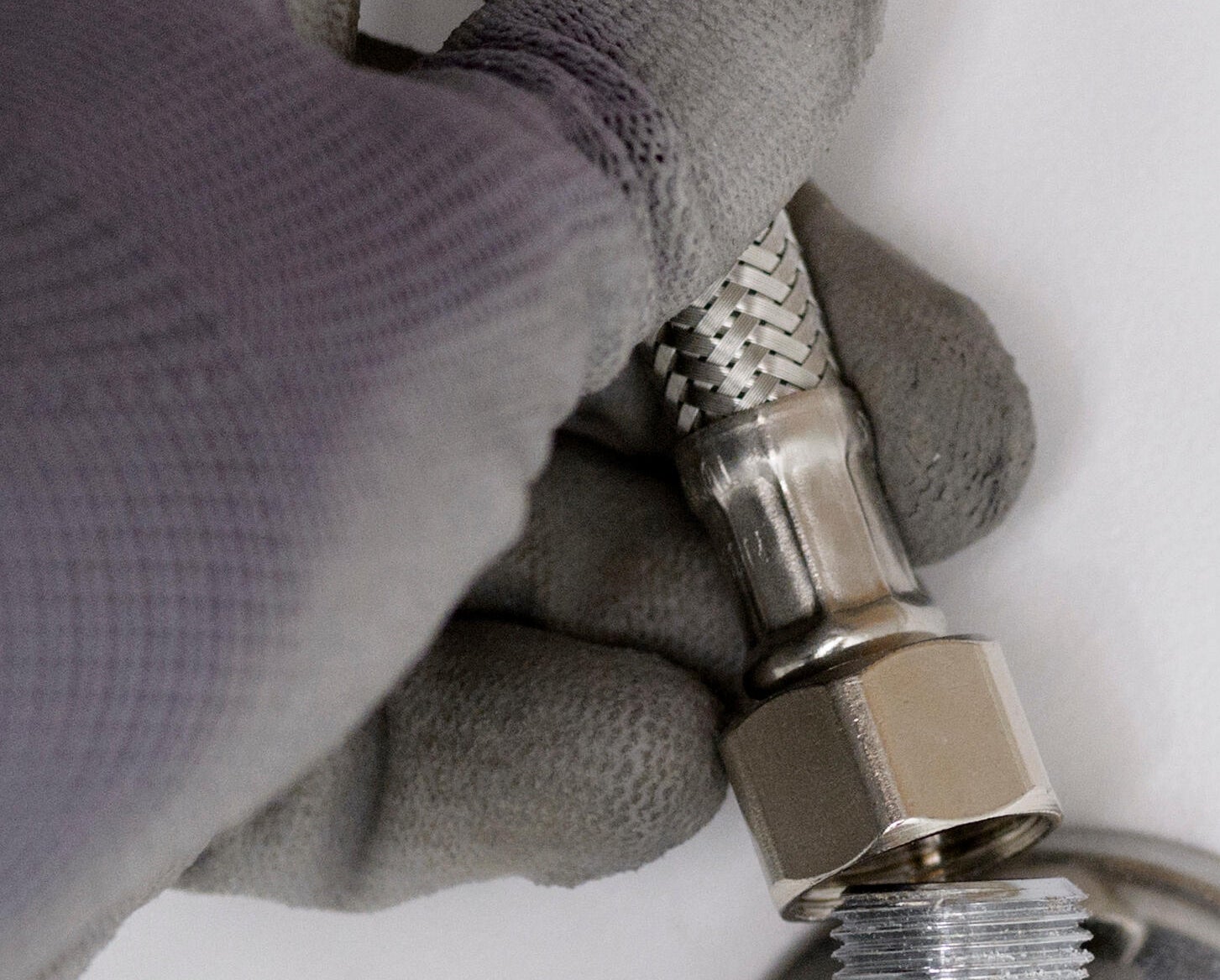 3.5. Mete la o las tuercas de apriete en el vástago roscado o tornillo y aprieta con la mano. Termina de apretar con una llave de tubo, usualmente de 12 mm. Atornilla los latiguillos a las llaves de corte.