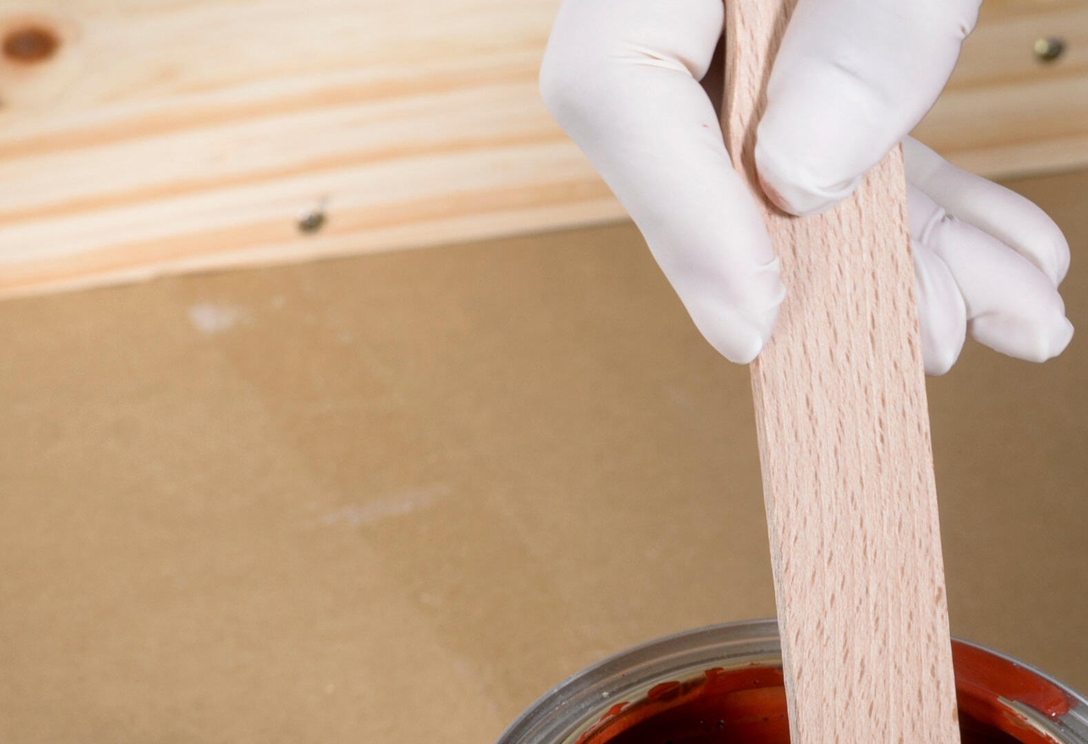 2.1. Remueve bien el bote pintura hasta igualar la pasta y conseguir la dilución apropiada. No es necesario añadir agua. Puedes utilizar un listoncillo de madera para remover.