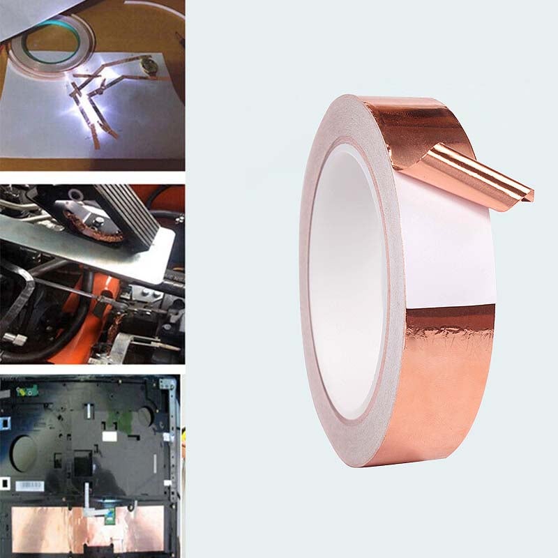 1 cinta adhesiva de cobre 10mm x 25m, un lado, conductor, protección EMI, fácil de usar, cinta de suelo y electrónica, alta conductividad