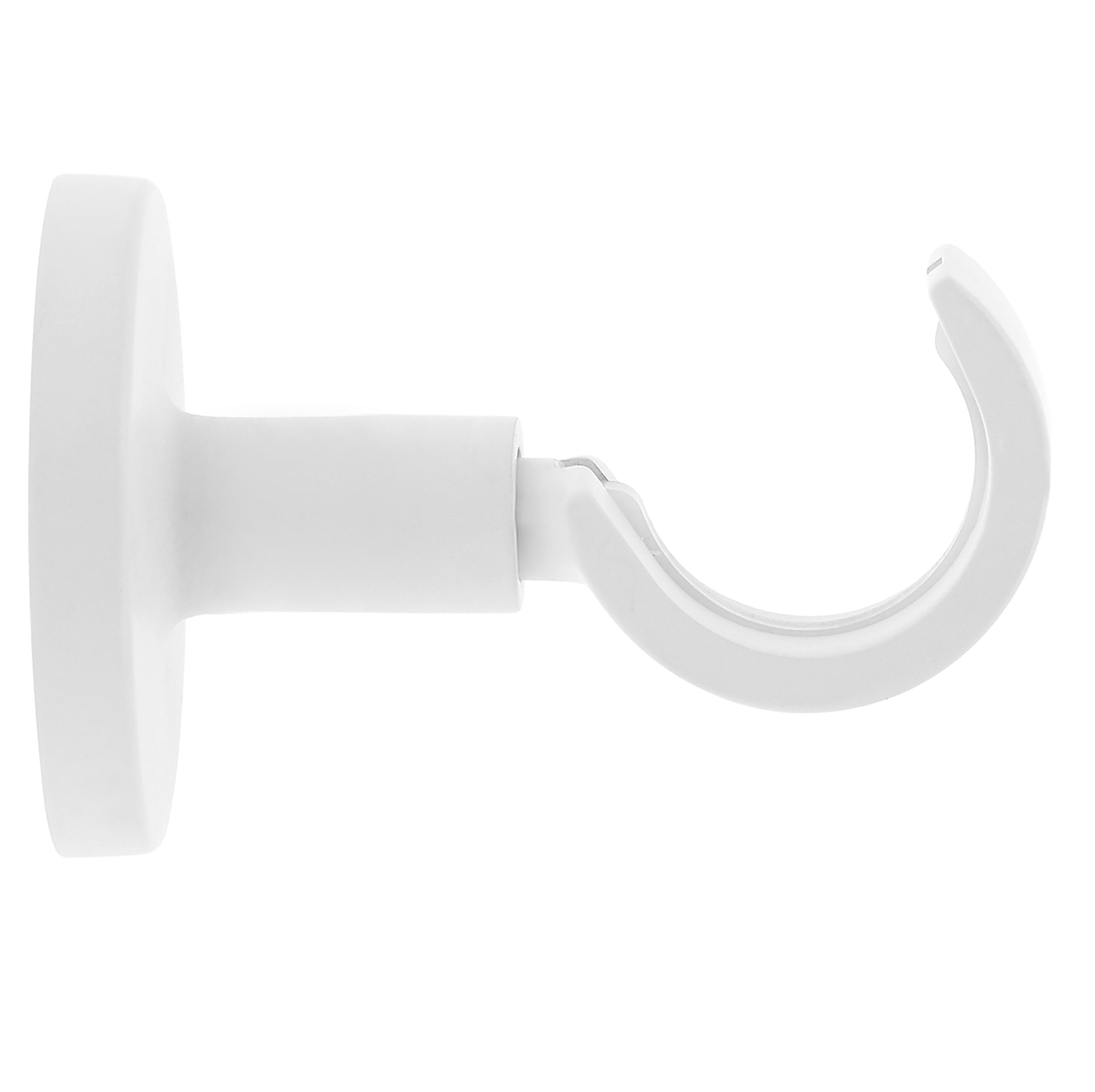 Soporte abierto para barra de cortina fabricado en acero con acabado en color blanco mate. Se instala atornillado a la pared (incluye tornillería) y cuenta con sistema 'easy fix' para fijar la barra rápidamente y de forma sencilla por presión sin necesidad de usar herramientas ni tornillos. Para barras de 28 mm de diámetro. Medidas: 3,5 x 6 cm (ancho x largo).