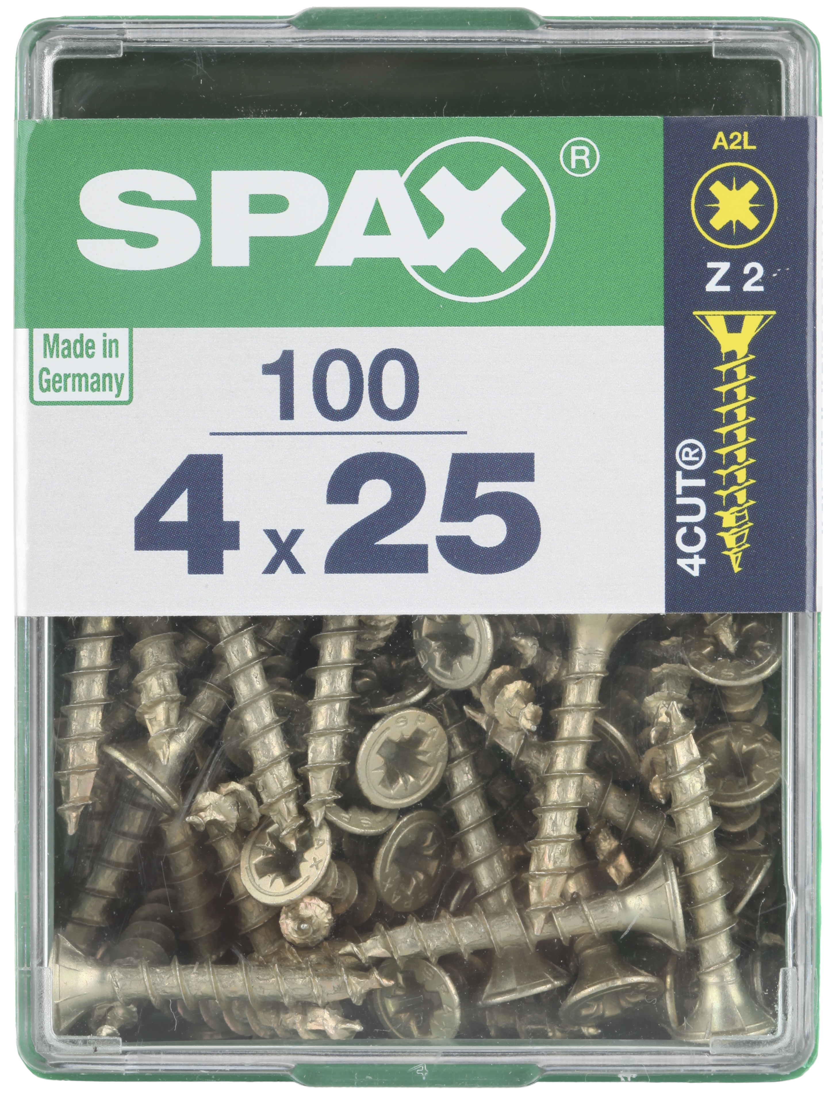 100 Tornillo para madera SPAX pozidriv con cabeza avellanada, ø 4 x L. 25 mm