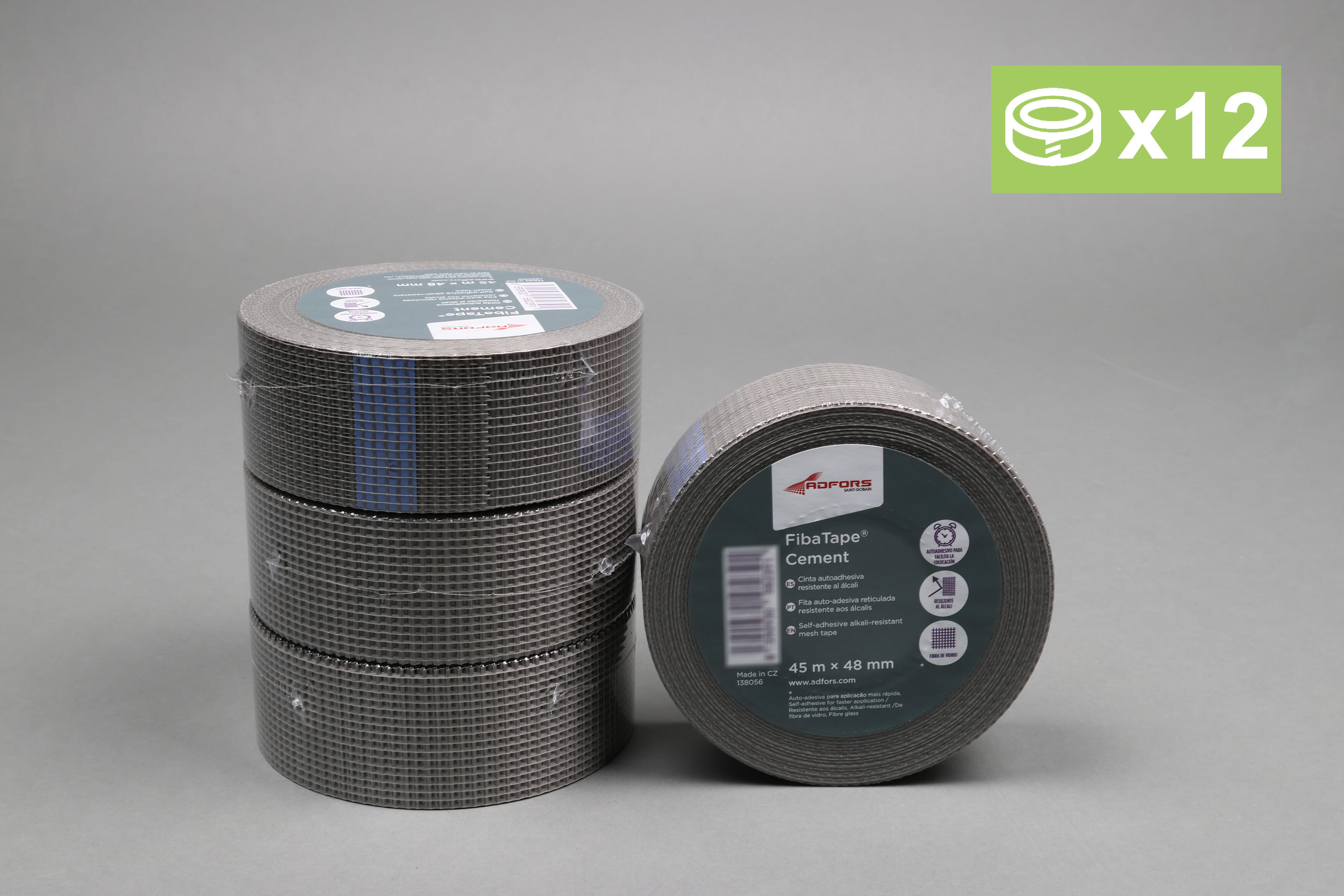 Caja de 12 unidades de Cinta FIBATAPE CEMENT 5x45 regarsa: una cinta autoadhesiva de malla de fibra de vidrio, diseñada para el refuerzo y acabado de juntas entre placas de cemento. Su estructura de malla proporciona una unión sólida y duradera, evitando fisuras y mejorando la integridad estructural de las superficies tratadas. Con unas dimensiones de 45 metros de largo y 4,8 cm de ancho, ofrece una cobertura amplia para proyectos de mayor envergadura. Su peso de 80 g/m² proporciona la resistencia necesaria para soportar tensiones sin comprometer la flexibilidad. Su alta resistencia a la tensión asegura una aplicación segura y eficaz. Esta cinta es ideal para su uso tanto en interior como en exterior, adaptándose a diversas condiciones de obra. Su fácil aplicación y alta adherencia la convierten en una opción confiable para profesionales que buscan resultados de calidad en el acabado de juntas.
