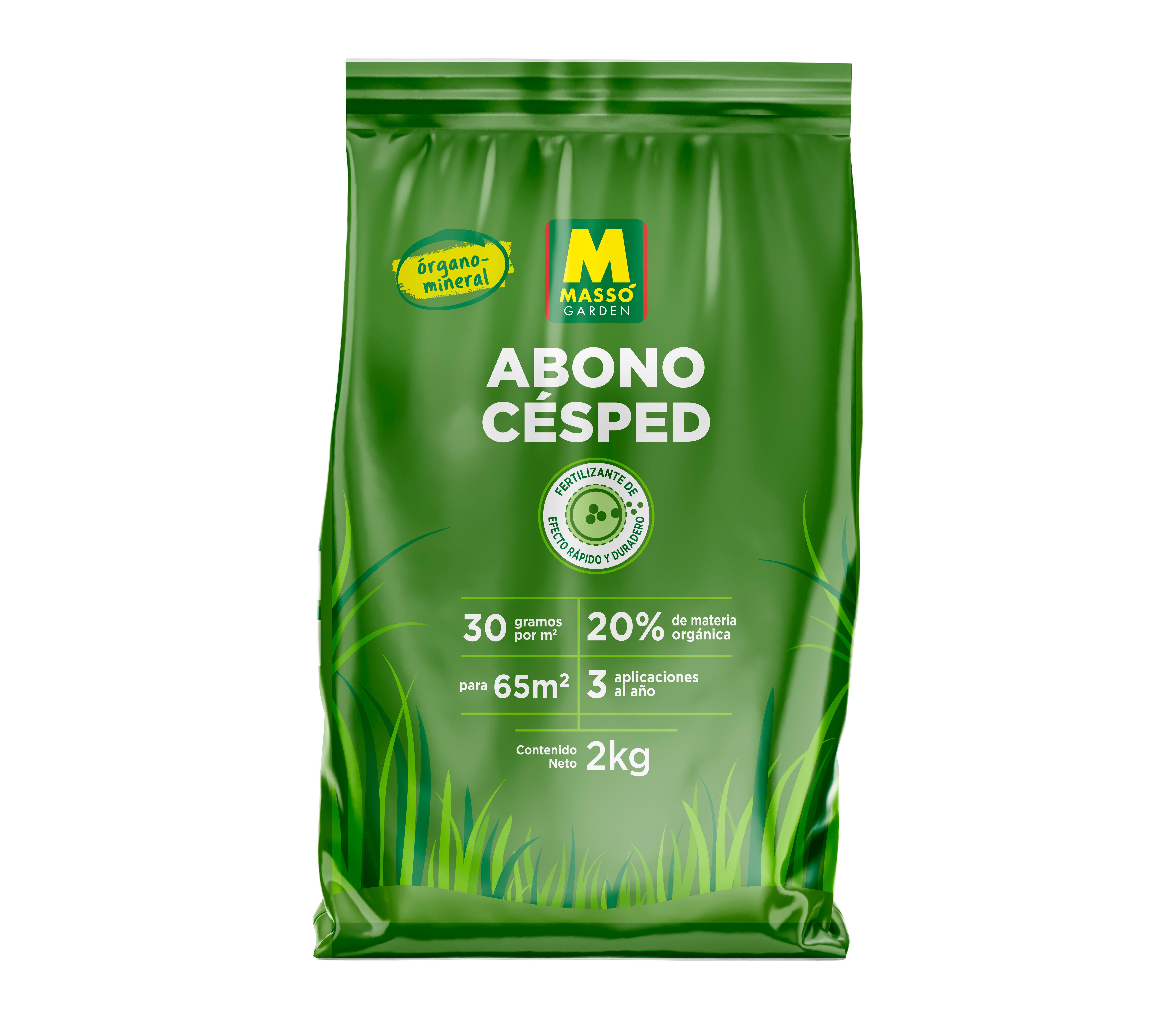 Abono Massó complejo organo-mineral de liberación lenta que proporciona un crecimiento rápido y sostenido del césped durante un periodo de 4 meses. Gracias a su formulación tiene poco riesgo de quemaduras y un alto contenido en magnesio, lo que aportará un césped verde luminoso y menos aportaciones de abono respecto a un abono azul o convencional. Contenido: 2 kg.