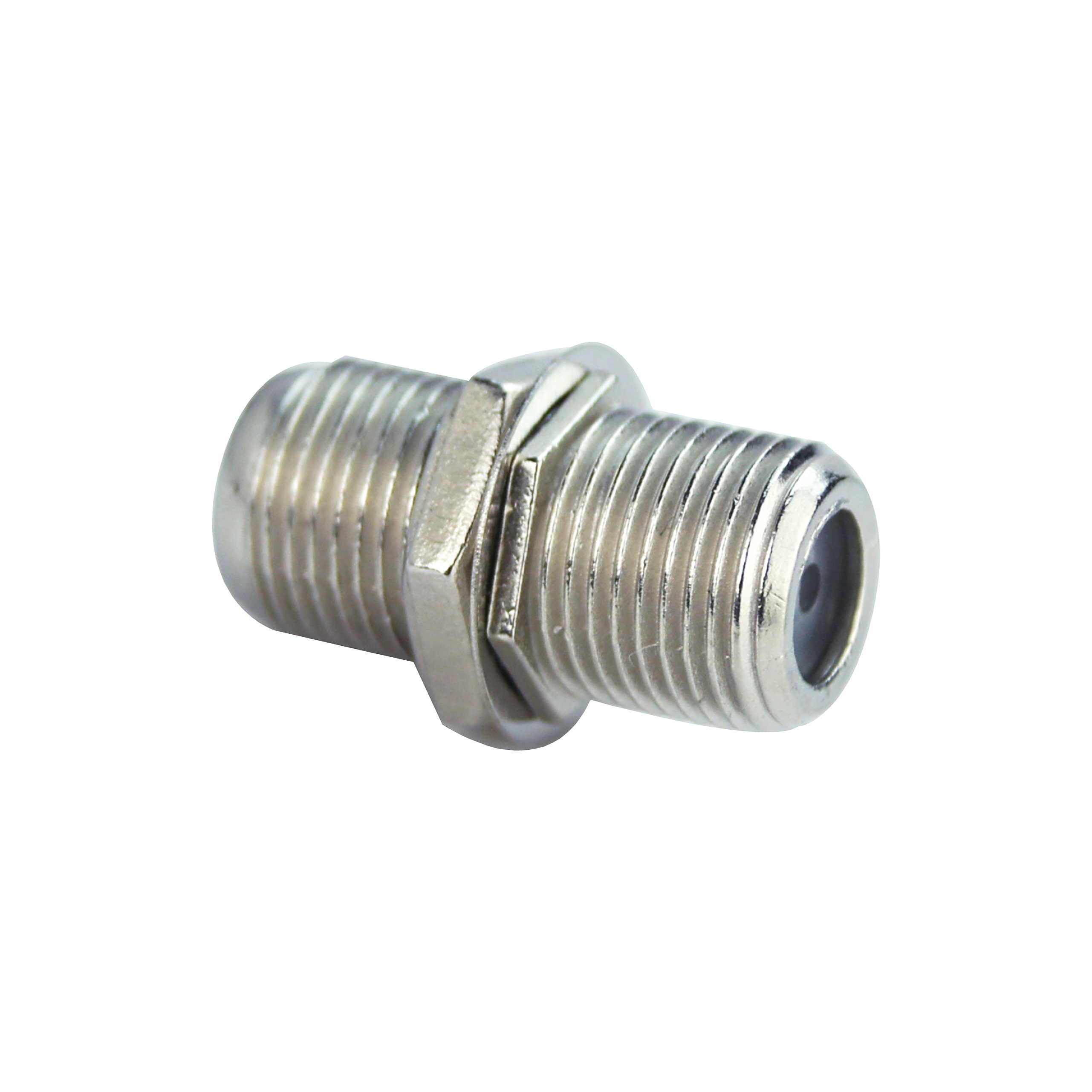 Adaptador para televisión compatible con recepción terrestre y satélite. Tiene una salida F Plug y una entrada de F Plug, con una unión hembra. los conectores cuentan con un elegante acabado niquelado. Tiene una longitud de 0,205 m.