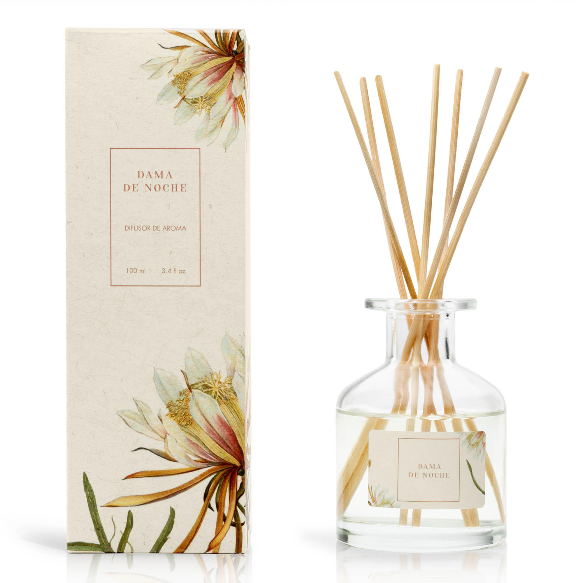 Fragancia en botella de vidrio con ocho varillas de ratán. Rotar las varillas cada dos o tres días para una mayor intensidad del aroma. El envase diseñado para ser reutilizado para decoración o con flores secas. La sutileza de las rosas y el Ylang resulta relajante y conecta directamente con la naturaleza, con los espacios abiertos y con la limpieza. Notas olfativas: Salida: Rosa, Limón. Corazón: Cuerpo: Ylang. Fondo: Ámbar y Sándalo. Contiene esencias naturales. Esencia de origen responsable. Contiene esencia Biodegradable.