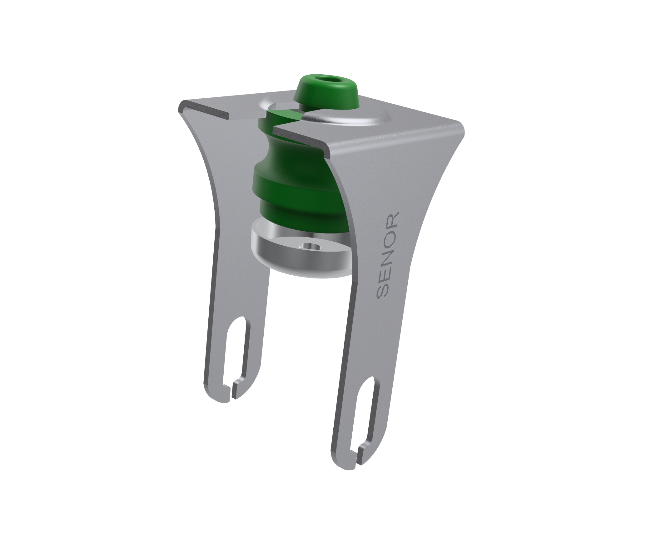 El amortiguador SE-105/PCV de SENOR permite realizar techos acústicos desmontables (registrables) obteniendo excelentes mejoras acústicas. Adaptable a perfiles de acero T-24. Rango de carga de 8 a 30 kg (goma verde).