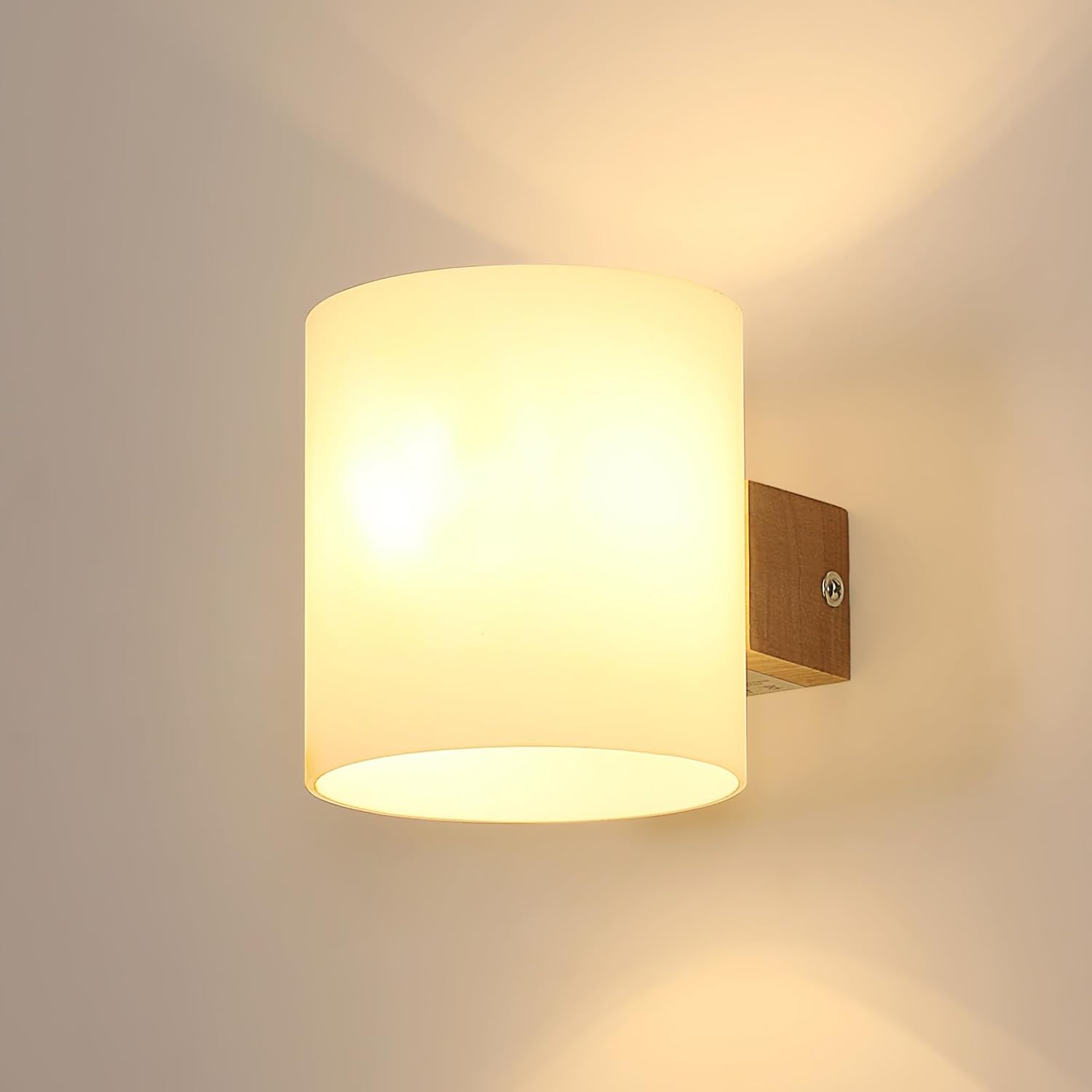 Aplique de pared para interior,lámpara de pared vintage de madera E27,pantalla de vidrio,ideal para dormitorio,sala de estar,escalera de madera