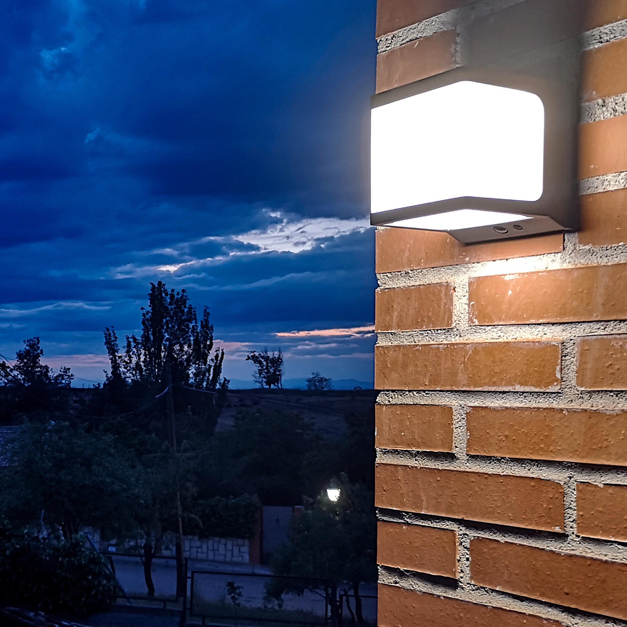 Aplique solar de exterior Jano fabricado en plástico de color negro y led integrado con chip Osram de color blanco neutro. Tiene una intensidad de 100 a 1.000 lúmenes y una temperatura de color blanco neutro de 4.000 K. Incorpora detector de movimiento con un ángulo de 120° y detector crepuscular, que te permitirá ahorrar energía ya que se encenderá automáticamente cuando empiece a anochecer. Dispone de 3 modos de funcionamiento para que puedas adaptarla a tus necesidades. Su diseño moderno te permite disfrutar de largas jornadas al aire libre usándose como elemento decorativo. Su estructura no se oxida. Índice de protección: IP65, indicado para uso exterior y zonas húmedas. Ahorrarás energía gracias a su luz solar y tiene una autonomía de hasta 36 horas. Este producto utiliza energías limpias para su funcionamiento o genera energía a partir de fuentes renovables. Medidas: 12,75 x 13,1 x 12,75 cm (ancho x alto x fondo).
