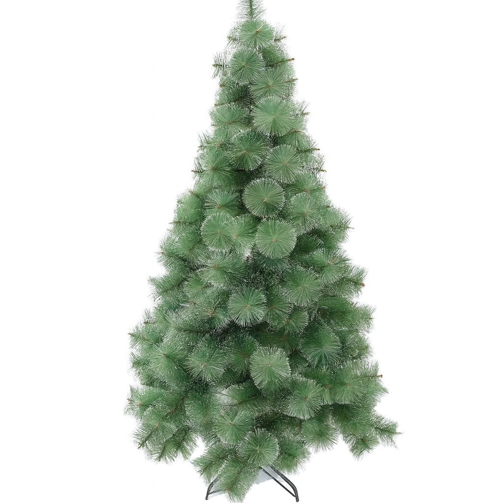 Árbol de Navidad verde con ramas densas y realistas que imitan la textura y el color del abeto natural. Su diseño aporta un toque tradicional y elegante a cualquier espacio del hogar u oficina.