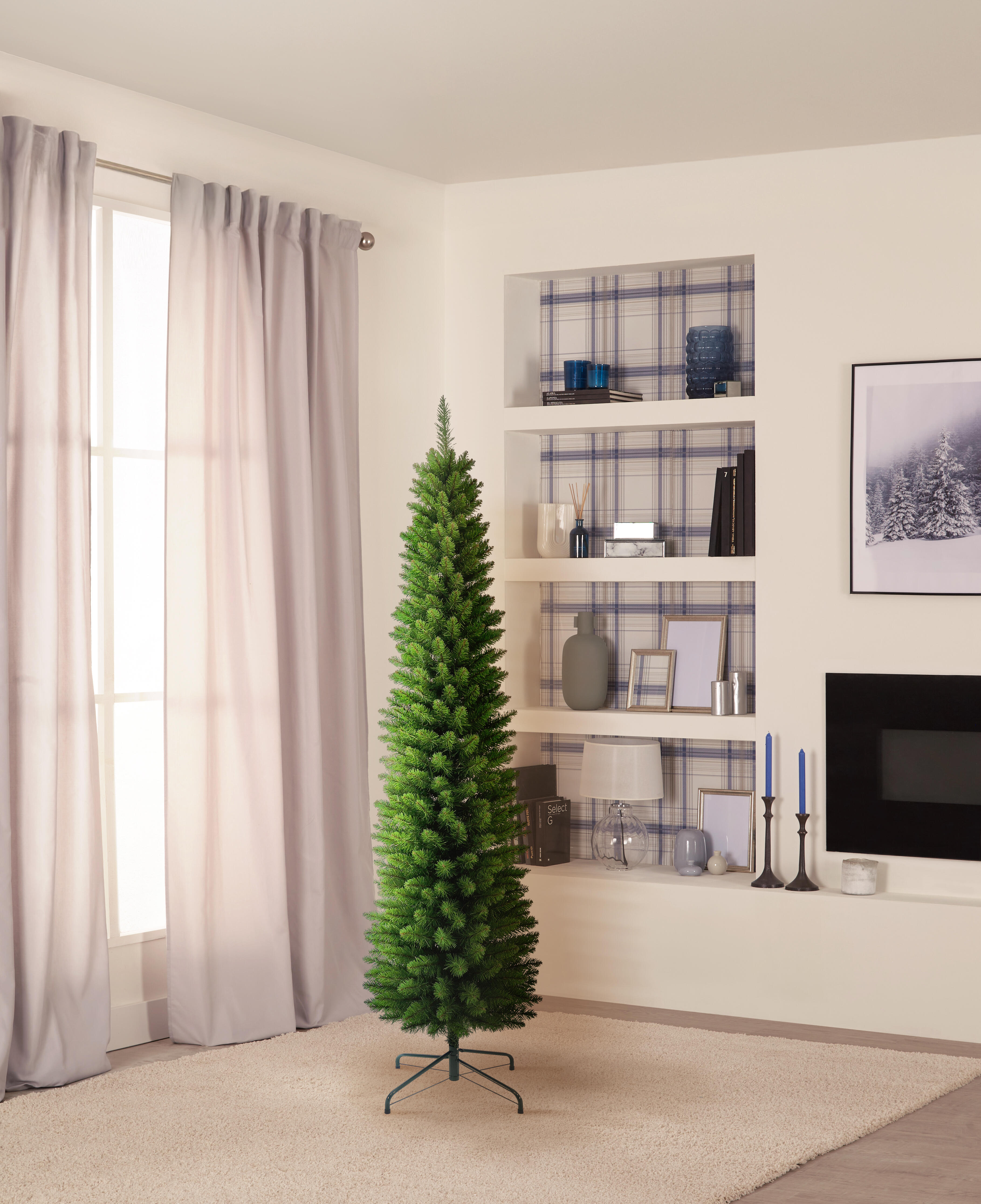 Árbol de Navidad modelo Keva Slim fabricado en PVC de color verde con estructura de hierro. Su uso está recomendado para interior, por lo que es el complemento perfecto para decorar tu salón y llenarlo del espíritu de la Navidad. Si buscas completar la decoración navideña de tu hogar, en Leroy Merlín encontrarás multitud de adornos y accesorios para crear composiciones a tu gusto, escogiendo de entre una amplia variedad de estilos y diseños aquellos que mejor encajen en tus estancias. Disponible en otros tamaños. Ofrece 3 años de garantía. Medidas: 34 x 150 cm (diámetro x alto).