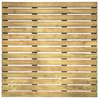 Baldosa de jardín fabricada en madera de pino. Cuenta con el sello PEFC, que certifica que la madera proviene de bosques gestionados de forma sostenible y respetuosa con el medioambiente. Producto fabricado en la Unión Europea con 3 años de garantía. Medidas: 100 x 3 x 100 cm (ancho x espesor x largo).