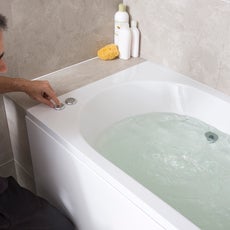 Bañera de hidromasaje en material acrílico reforzado con fibra de vidrio de color blanco con potencia de bomba de agua de 550 W con ventilación fija para una presión de masaje con aire constante. Con una capacidad de 168 litros hasta el orificio de rebose, esta bañera dispone de 6 chorros de masaje con jets enredados y control electrónico con pulsador electronico. Puede adaptarse la altura de instalación en ángulo gracias a sus 4 patas regulables. Para una mayor seguridad en el uso, cuenta con un detector de nivel con parada automática en caso de llegar el nivel máximo de agua en la bañera. Incluye armazón y sifón. Desagüe de vaciado suministrado. Medidas: 80 x 55 x 170 cm (ancho x alto x largo).