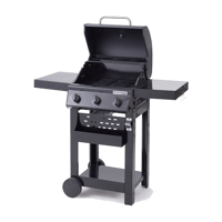 Barbacoa de gas Naterial 3B Alton con función de grill, recomendada para 6 comensales. Está fabricada en acero esmaltado y texturizado de color negro. Cuenta con 3 quemadores de acero inoxidable con encendido piezoeléctrico de 9 kW y 2 parrillas de acero esmaltado con acabado brillante. Incluye carro con 2 ruedas grandes para facilitar su transporte, tapa de cocción de acero esmaltado y galvanizado con termómetro integrado para controlar en todo momento la temperatura de los alimentos. También dispone de abrebotellas, 2 mesas abatibles laterales para poner los productos y facilitar el manejo y 3 ganchos para tener a mano los utensilios de cocina. Además, podrás disfrutar de un apartado frontal para especias, chimenea esmaltada, bandeja recogegrasas extraíble para facilitar la limpieza y parrilla superior de recalentamiento compatible con plancha de 41,5 x 24 cm (largo x ancho), no incluida. Su diseño sobre pie te permitirá disfrutar de las mejores parrilladas al aire libre con la máxima comodidad. Esta barbacoa es de las más completas del mercado, ideal para disfrutar de tus mejores parrilladas al aire libre. Medidas de la barbacoa: 114 x 114 x 55 cm (largo x alto x ancho). Medidas de las parrillas: 41,5 x 24 cm (largo x ancho).