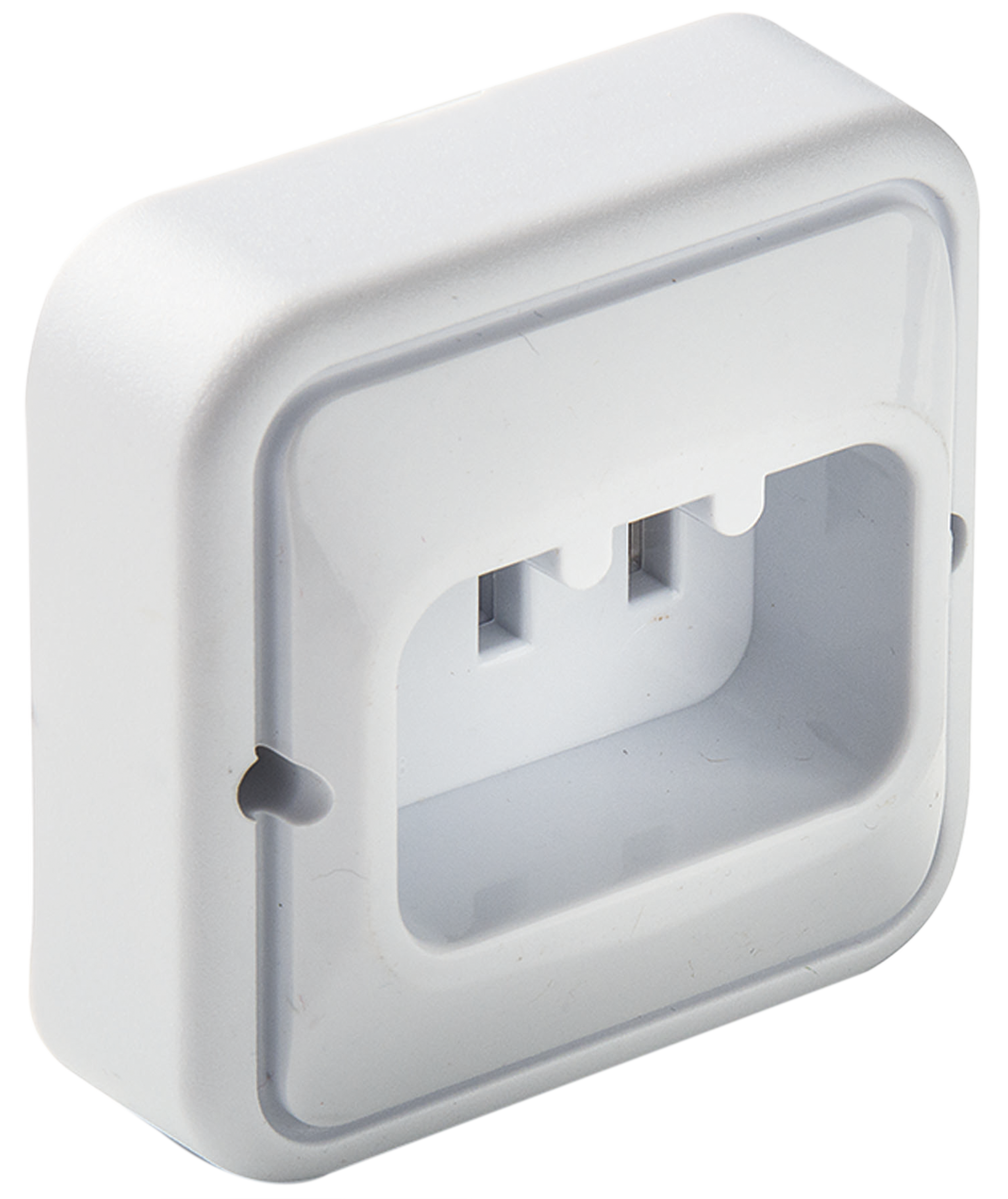 Base de enchufe hembra de 25 amperios de potencia. Se puede colocar en paredes inclinadas. Está fabricada en plástico de color blanco. Medidas: 84 x 57 x 85 cm (ancho x alto fondo).
