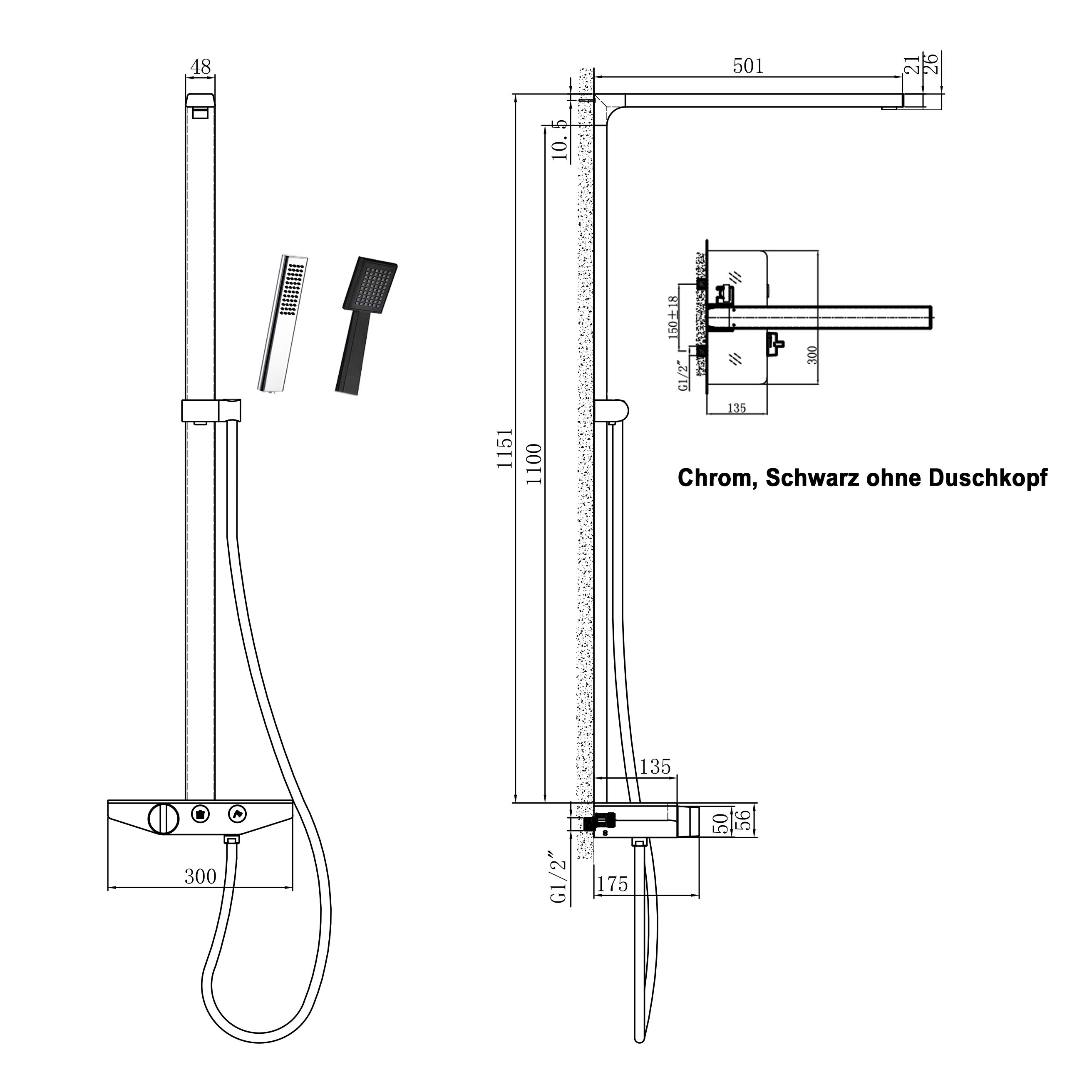 | Dimensiones | Longitud de la barra de ducha: 1151 mm para dimensiones detalladas ver diagrama | |||||||