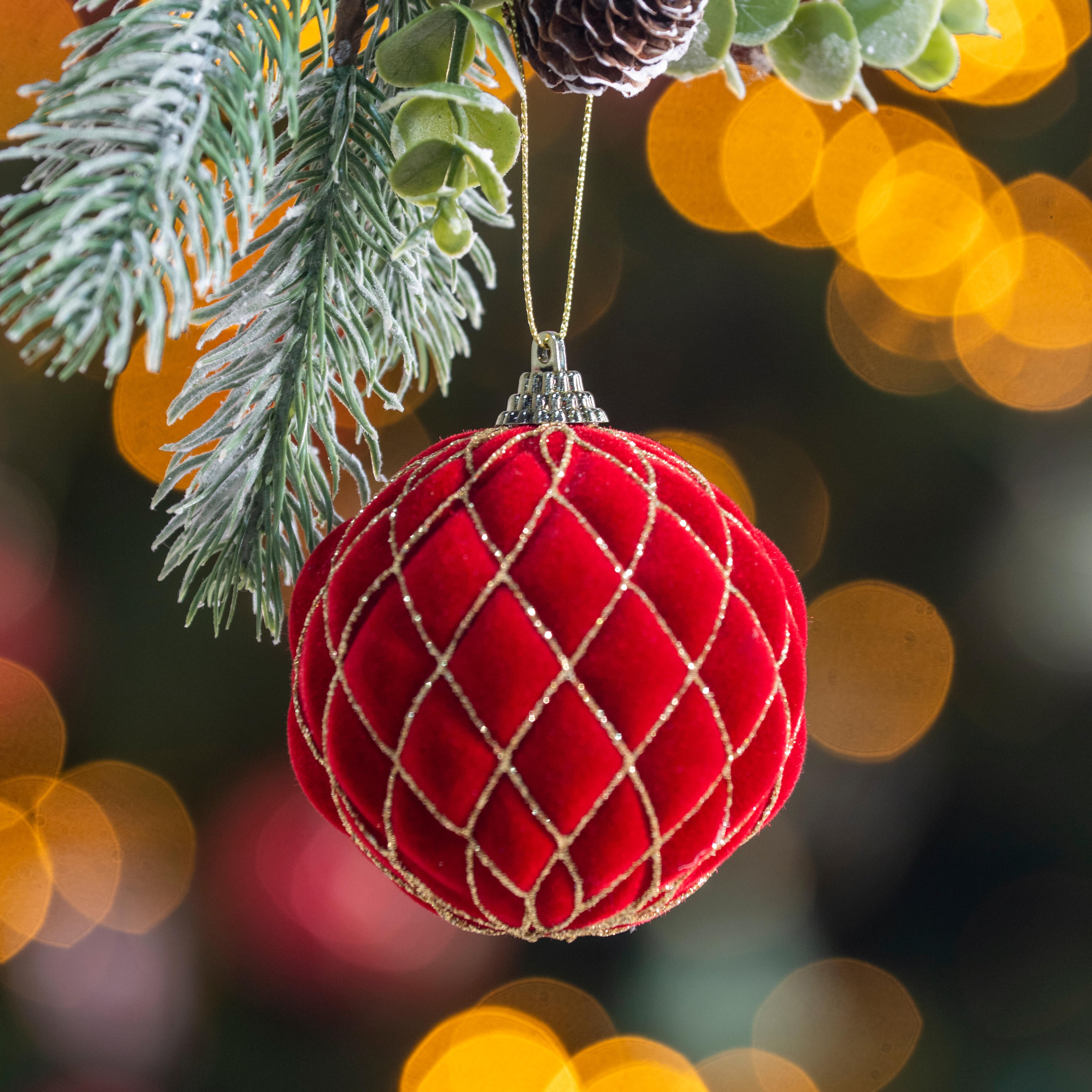 Decoris colgante bola de Navidad de plástico rojo Añade un toque encantador a tu árbol de Navidad con el colgante bola de Navidad de Decoris, en un vibrante tono rojo navideño con detalles dorados. Esta bola de 8 cm de diámetro es perfecta para crear un ambiente festivo en tu hogar. Hecha de plástico, es ligera y resistente, lo que garantiza que no se rompa fácilmente, brindándote tranquilidad durante la temporada festiva. Cada bola está adornada con purpurina dorada y un diseño de cuadros, sumando brillo y elegancia a tu decoración navideña. El capuchón dorado y su modo de colgar con alambre dorado hacen que sea fácil de colocar en cualquier rama de tu árbol de Navidad. Disfruta de un árbol deslumbrante y festivo que capturará la atención de todos tus invitados estas navidades. Transforma tu espacio en un verdadero refugio navideño con este imprescindible colgante de Decoris.