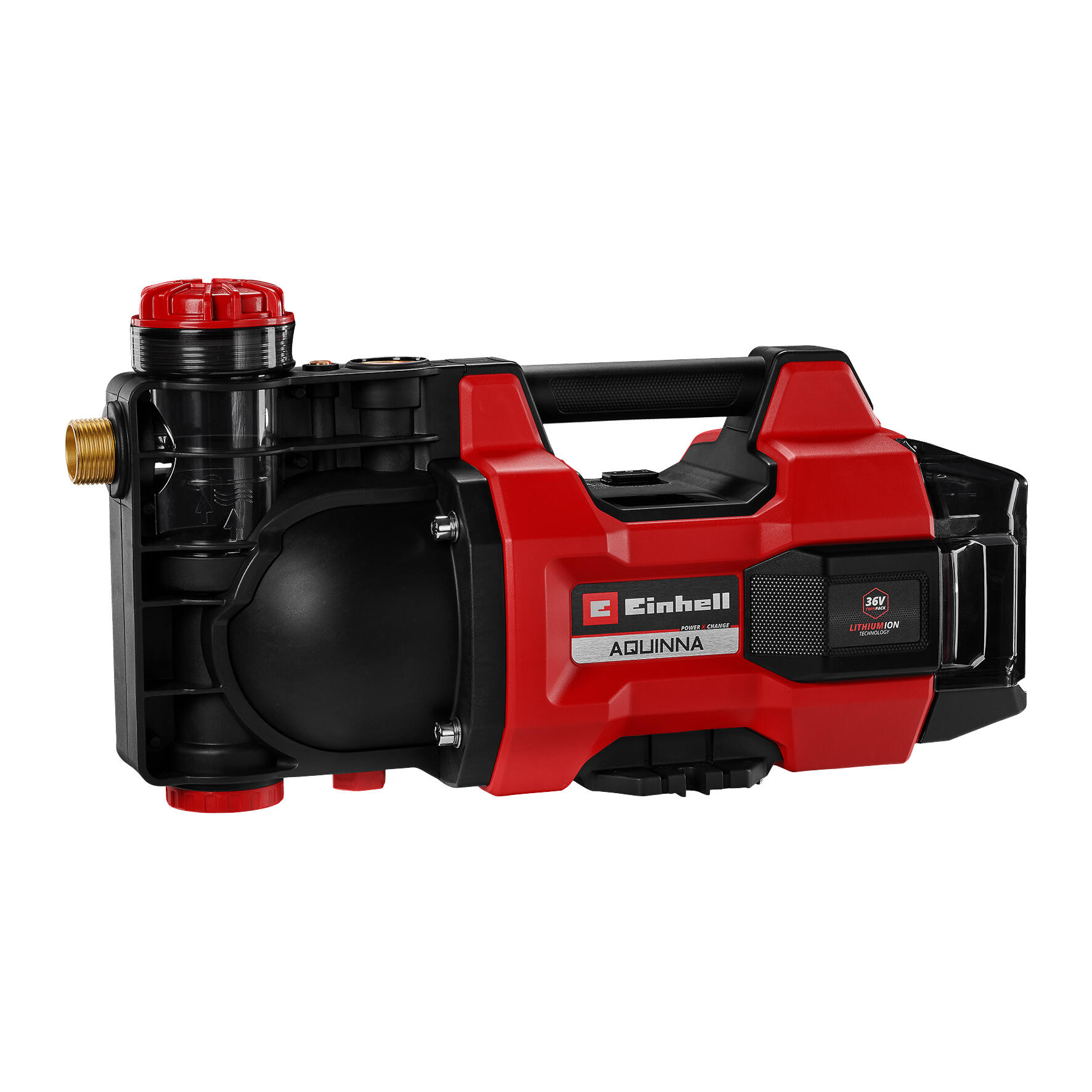 La bomba de jardín con batería AQUINNA 36/34 de Einhell es una bomba potente que se puede utilizar de forma versátil en la casa y el jardín, incluso en lugares sin conexión eléctrica para bombear agua de A a B. Pertenece a la flexible familia Power X-Change en la que se pueden combinar entre sí las baterías, cargadores y equipos de sistema. La tecnología Twin-Pack de 36 V que combina la fuerza de dos baterías de 18 V aporta máxima potencia. La bomba dispone de dos modos de potencia: el modo BOOST para una máxima capacidad de impulsión y el modo ECO para una mayor duración de la batería con una presión de bombeo más baja. Con una capacidad de impulsión de hasta 3.400 litros por hora, la bomba de agua con batería puede mover grandes cantidades de agua. Puede alcanzar una máxima altura de impulsión de 37 m lo que corresponde a una máxima presión de impulsión de 3,7 bar. La bomba puede aspirar agua desde una profundidad de hasta 6 metros. Para un llenado sencillo, por ejemplo, en el primer proceso de aspiración, está presente un gran tornillo de llenado de agua. El vaciado de la bomba, especialmente para la protección contra heladas en invierno, se realiza sin complicaciones a través de un tornillo de drenaje de agua en la parte inferior. Un indicador de nivel de agua indica en todo momento si la bomba está suficientemente llena de agua para evitar daños por funcionamiento en seco. En caso de sobrecalentamiento, el equipo se desconecta automáticamente por la protección a sobrecargas para impedir datos. La bomba de jardín con batería dispone de un asa de transporte central para transportar sencillo y agujeros de fijación para fijar en un lugar de uso permanente. Está equipada con dos conexiones roscadas robustas de metal. El envío se realiza sin batería ni cargador, son adquiribles por separado.