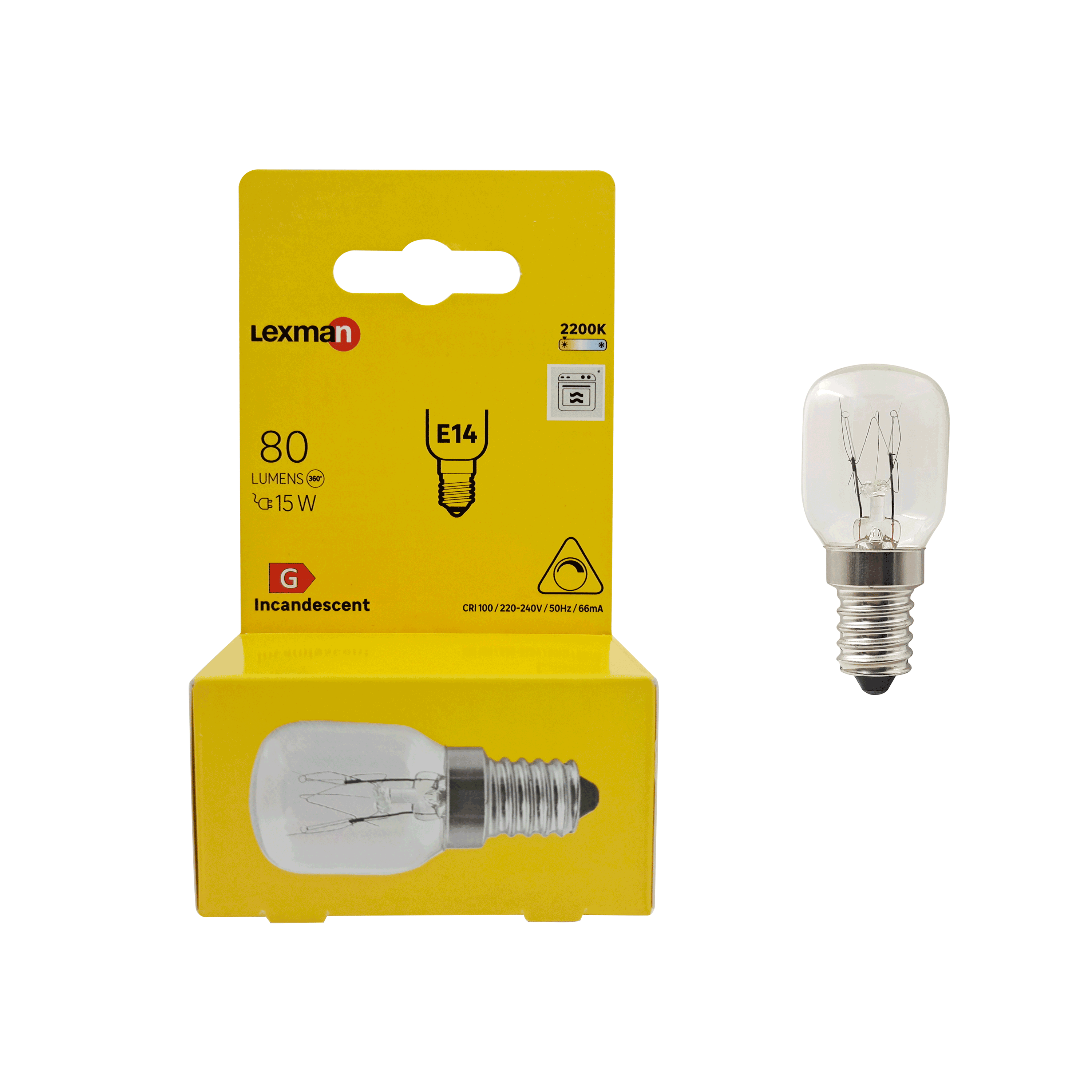 Bombilla pequeña Lexman para campana, horno o frigorífico (T25), con casquillo pequeño a rosca (E14), temperatura de color blanco cálido (2.100 K) y 110 lúmenes. Bombilla transparente con 5 años de garantía. Etiqueta energética: G.