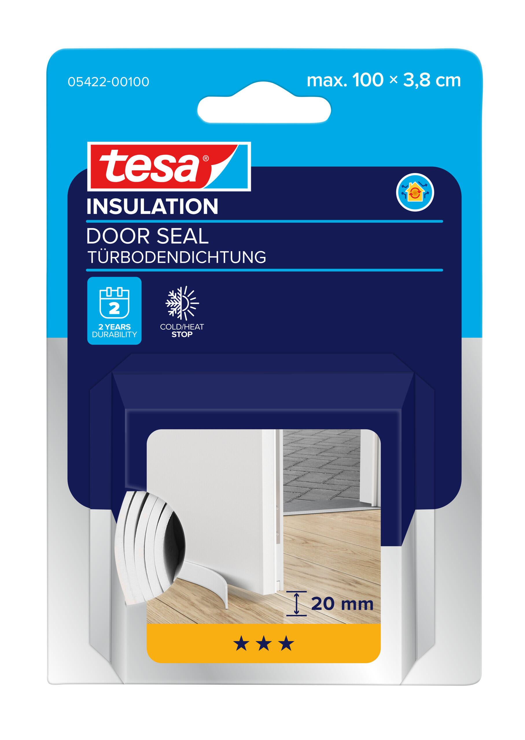 El burlete para puertas tesa® INSULATION es tu solución contra las corrientes de aire. Esta tira de espuma autoadhesiva es perfecta para suelos lisos como laminados, parquet o azulejos. Es una alternativa sencilla y económica a los tradicionales sellos de cepillo.