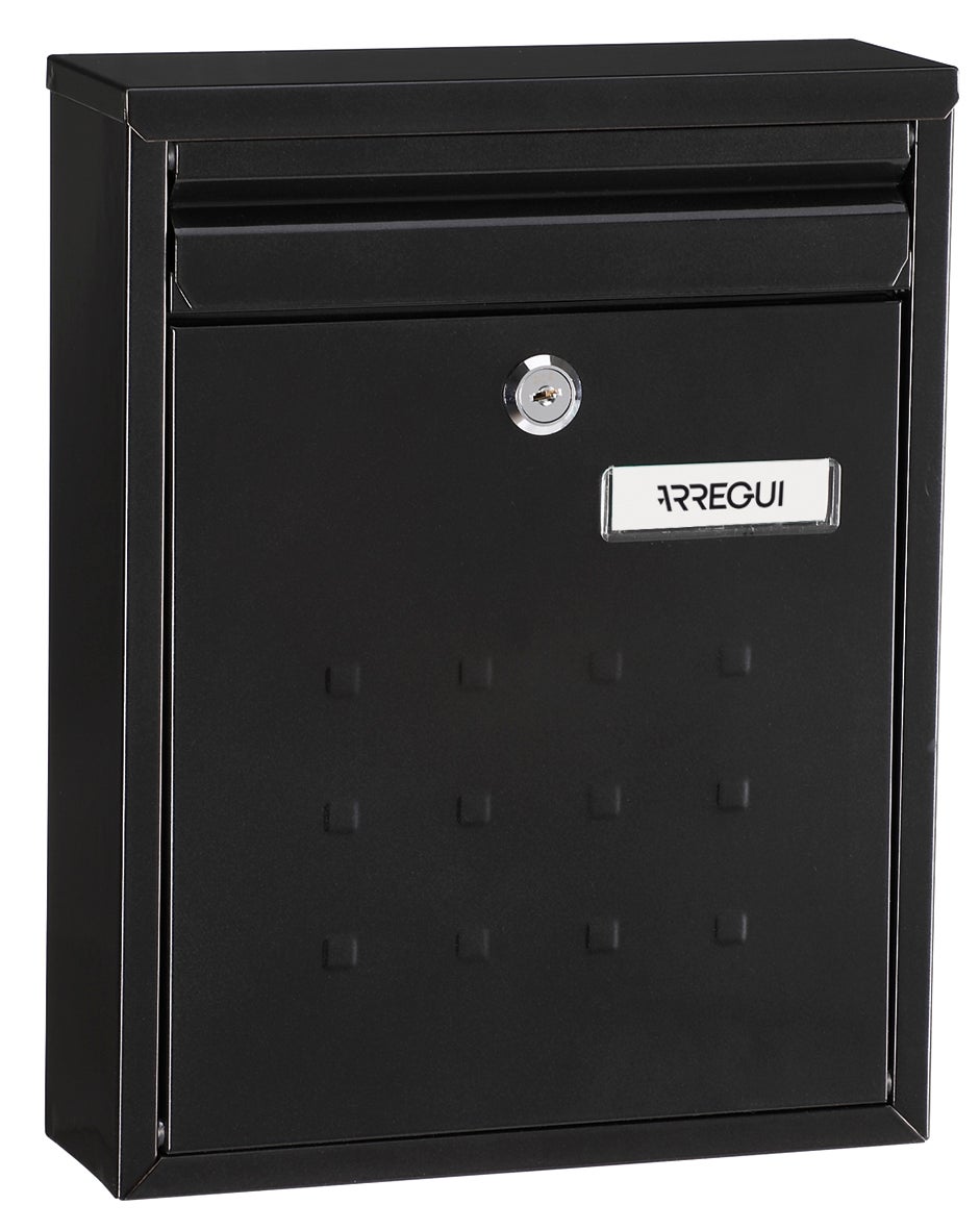 Buzón de tipo compacto fabricado en acero de color negro brillante. Dispone de una puerta de 0,7 mm de espesor y se vende con 2 llaves. Es ideal para reposiciones por su capacidad de adaptación a espacios en los que ya había un buzón, para lugares interiores como exteriores; y es modulable, permite su colocación en agrupaciones. Medidas: 25 x 32 x 10 cm (ancho x alto x fondo).