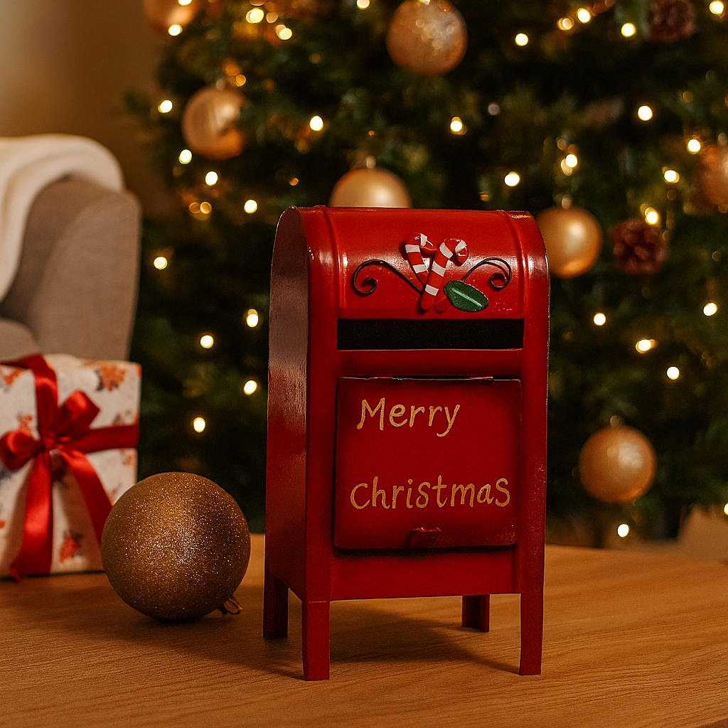 Buzón rojo decorado para cartas de hojalata decoración navideña