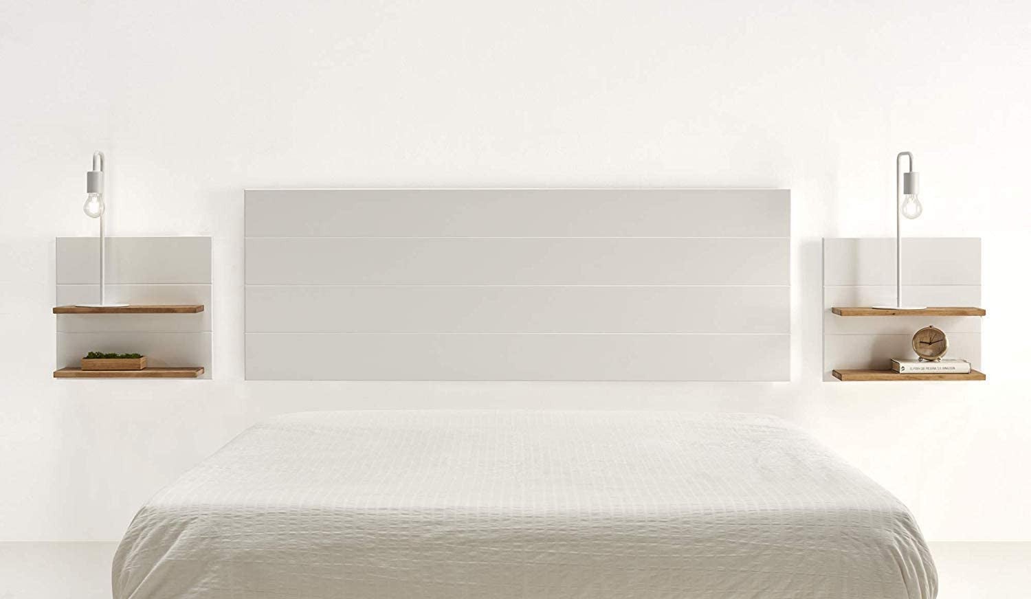 Más información Este enlace se abrirá en una nueva ventanaOriginal y exclusivo conjunto para el dormitorio compuesto por cabecero de madera lacado color blanco y 2 mesitas de noche colgantes color blanco. Producto de fabricación nacional. Medidas cabecero: Ancho: 155 cm x Alto: 60 cm x Grosor: 2 cm. Medidas mesitas: Ancho: 45 cm x Alto: 45 cm x Grosor: 2 cm. No requiere montaje, sólo colgar en la pared. Las entregas se realizan a pie de calle. Al tratarse de madera natural, el color puede variar ligeramente al que se muestra en la imagen.