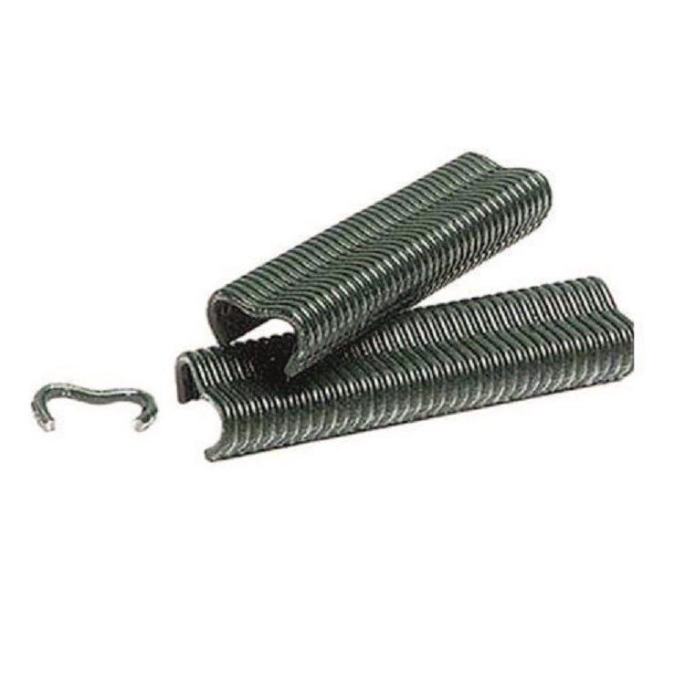 CERTIFICADO ISO 90001:2008. Revestido BEZINAL,eutéctica de 95% aluminio con Misch y zinc. Cumple NORMA ASTB750 por todas las propiedades excepcionales frente a la corrosión.GALFAN. Alambre galvanizado verde. Medidas: 0,60x1,80 mm. Formato A-18 1000 grapas verdes.