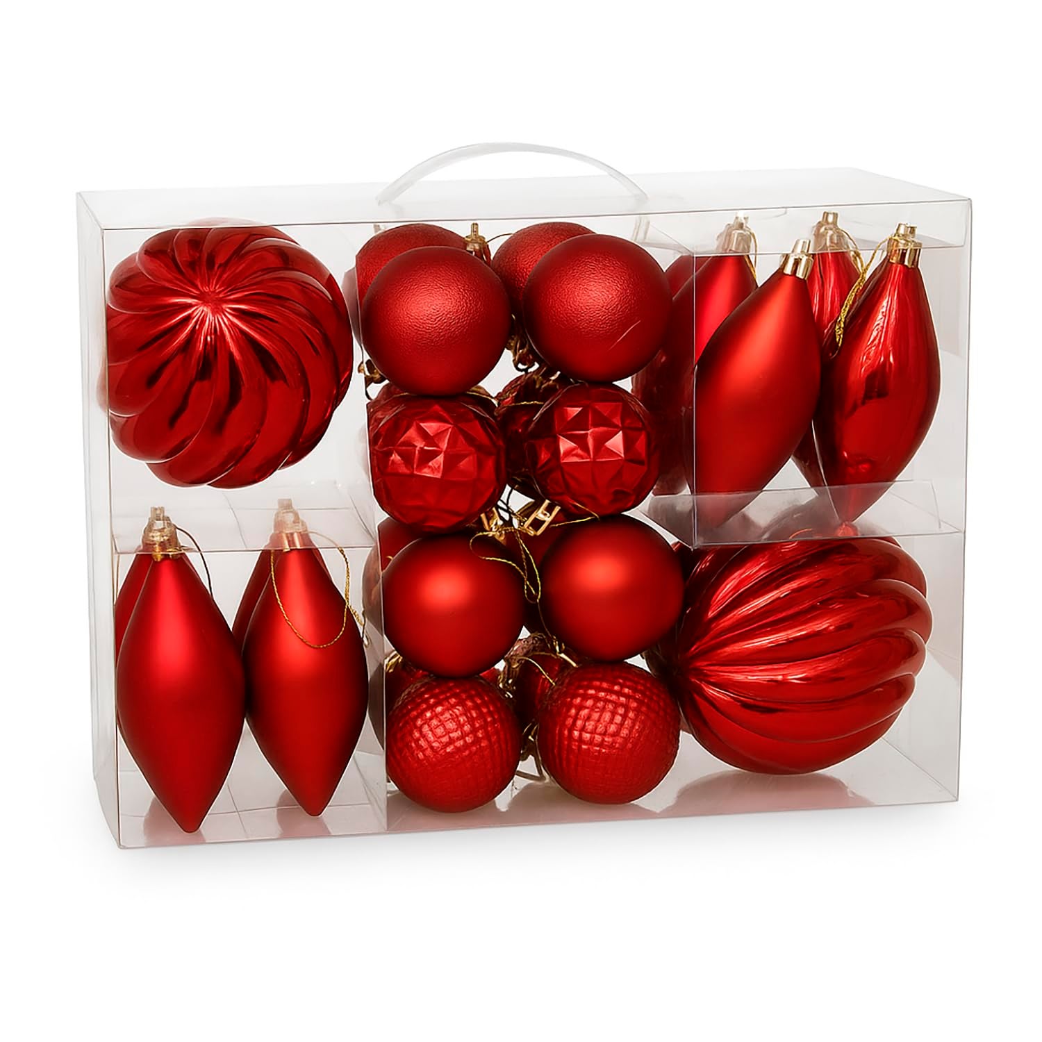 Caja 26 Adornos Arbol Navidad, Plástico, 6/12 cm, Variado, Rojo