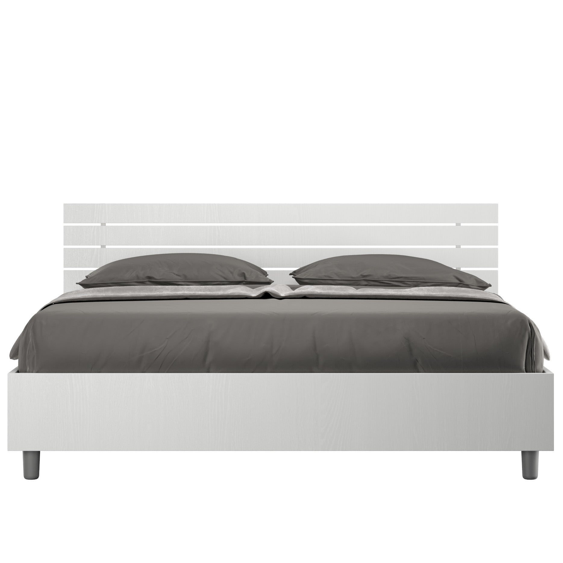 Cama con somier 160x190 con cabecera inclinada de listones fresno blanco Ankel