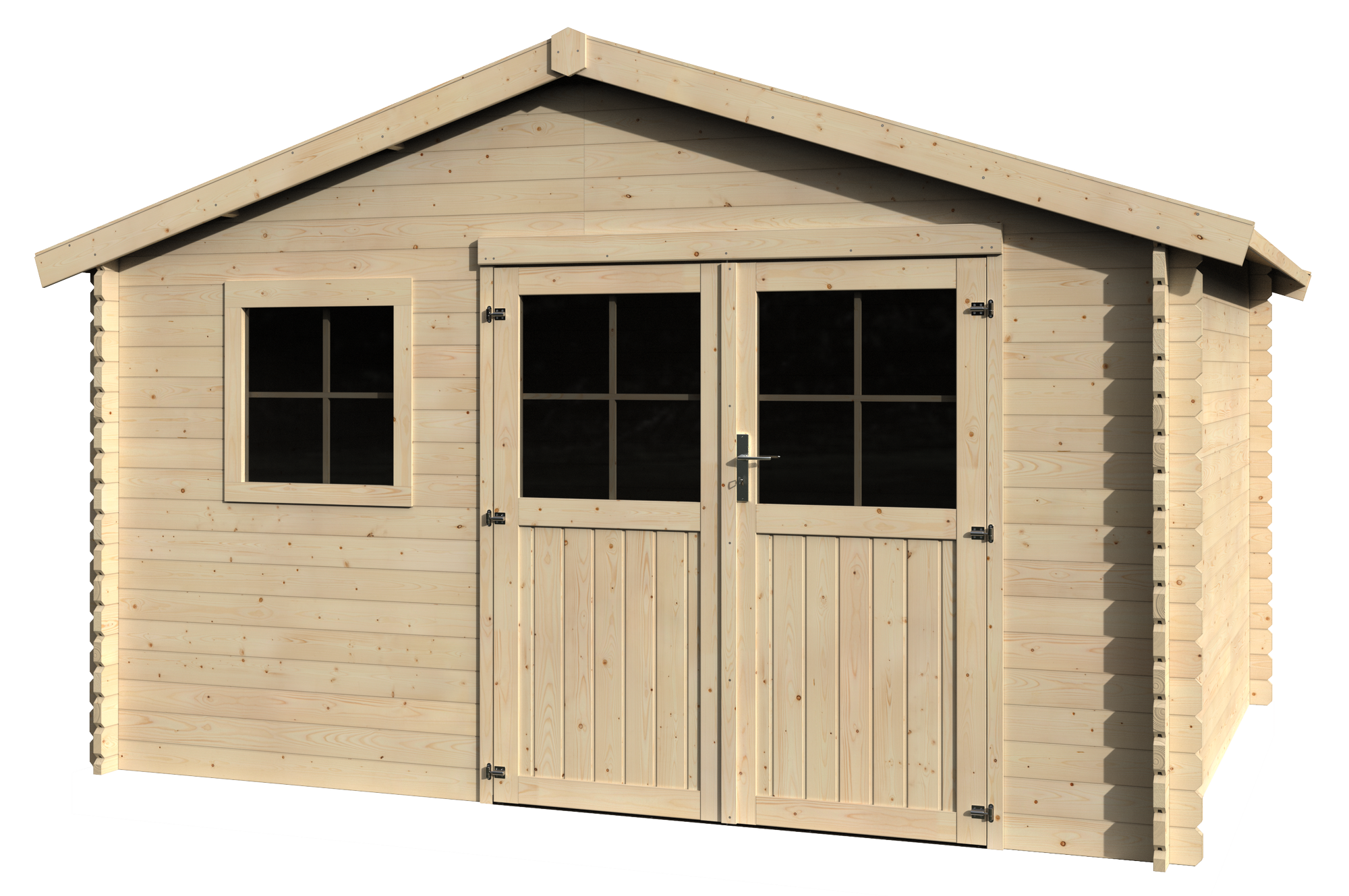 Caseta de madera Eiger de 429.7x257x302.5 cm y 11.86 m2 con 34 mm espesor y doble puerta abatible NATERIAL