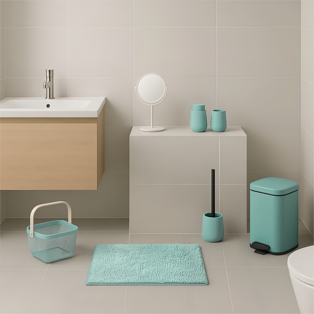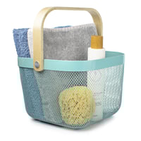 Cesto de baño metálico Noa con agarre de bambú. Perfecto para organizar tu menaje de baño: jabones, cremas, toallas pequeñas, etc. Resistente y elegante. Disponible en varios colores.