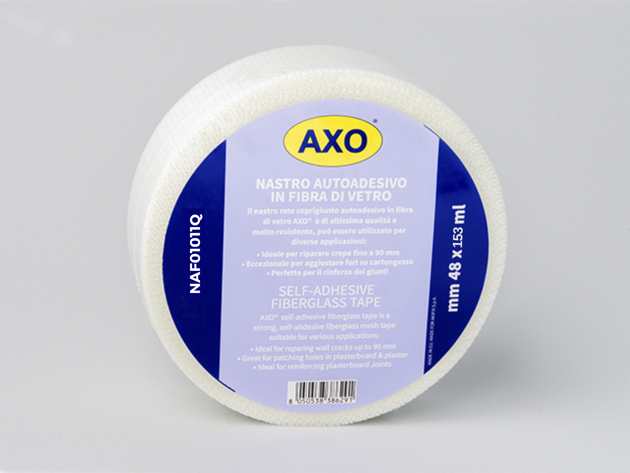 La cinta AXO autoadhesiva de fibra de vidrio es una cinta muy resistente que se puede emplear para diversos usos : Para reparar agujeros en las placas de yeso, para reparar grietas de hasta 90 mm, para el rejuntado (tratamiento de juntas) en la instalación de placas de yeso laminado. Consigue una superficie homogenea y esteticamente perfecta de forma rápida y sencilla y sin ningún tipo de contratiempo.