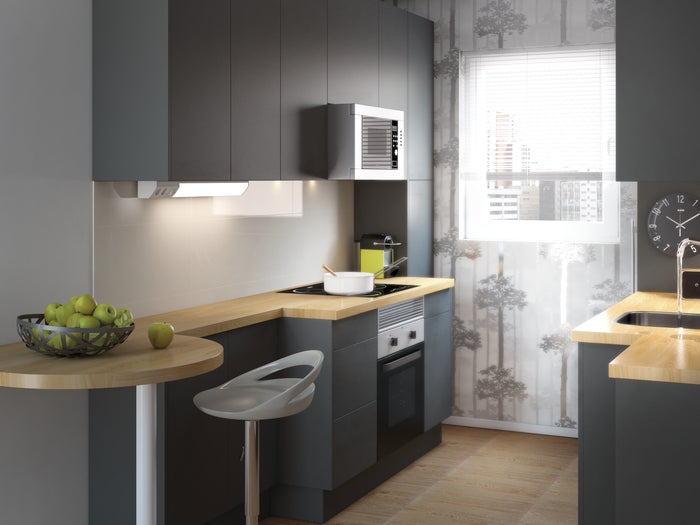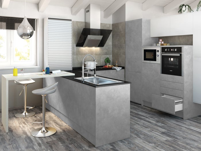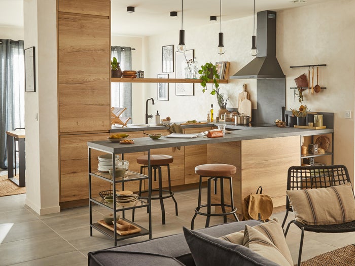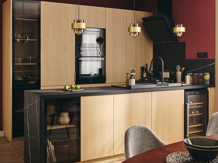 Descubre la cocina Amazona. Elegante y con aspecto de madera, es el modelo ideal para transformar tu cocina en el escenario perfecto para acogedores momentos en familia.
