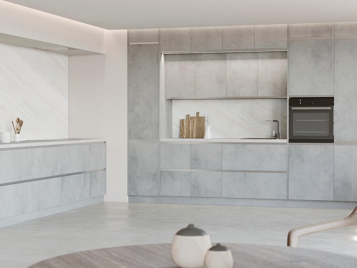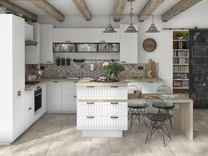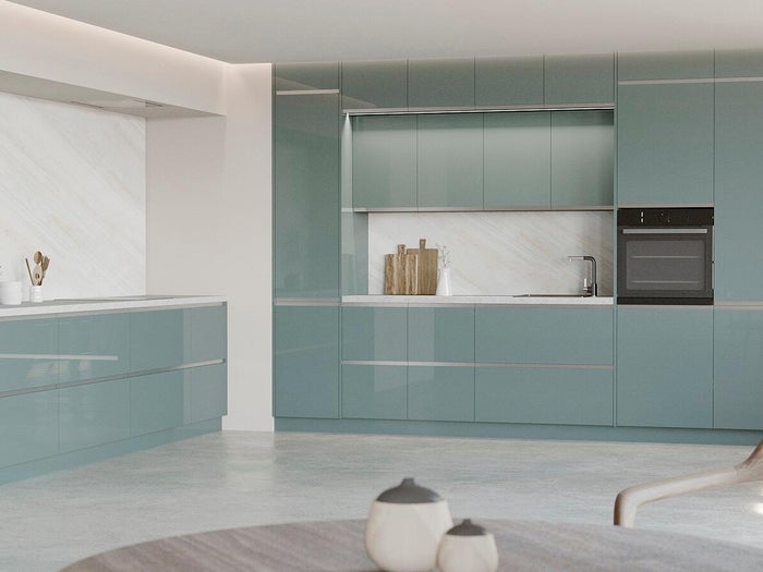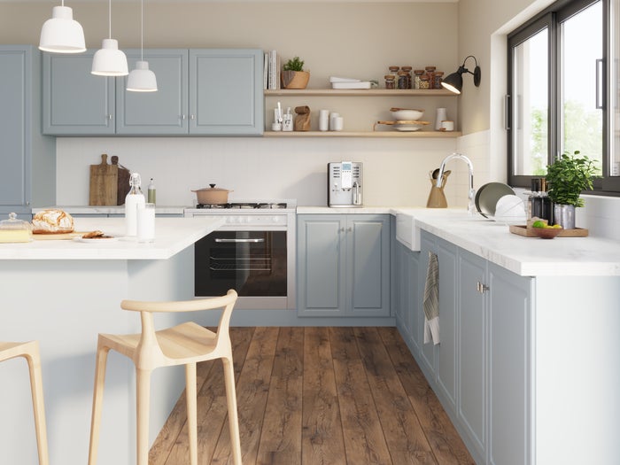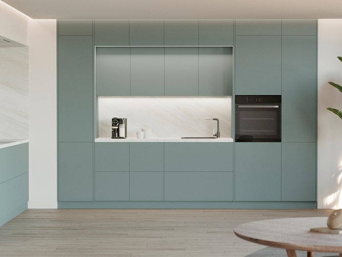 Descubra nuestra cocina Oxford, elegante y atemporal. Disponible en tres colores, azul aguamarina, gris perla y blanco mate, Tanto el azul como el gris resultan frescos y revitalizantes, mientras que el blanco es un clásico que nunca falla.