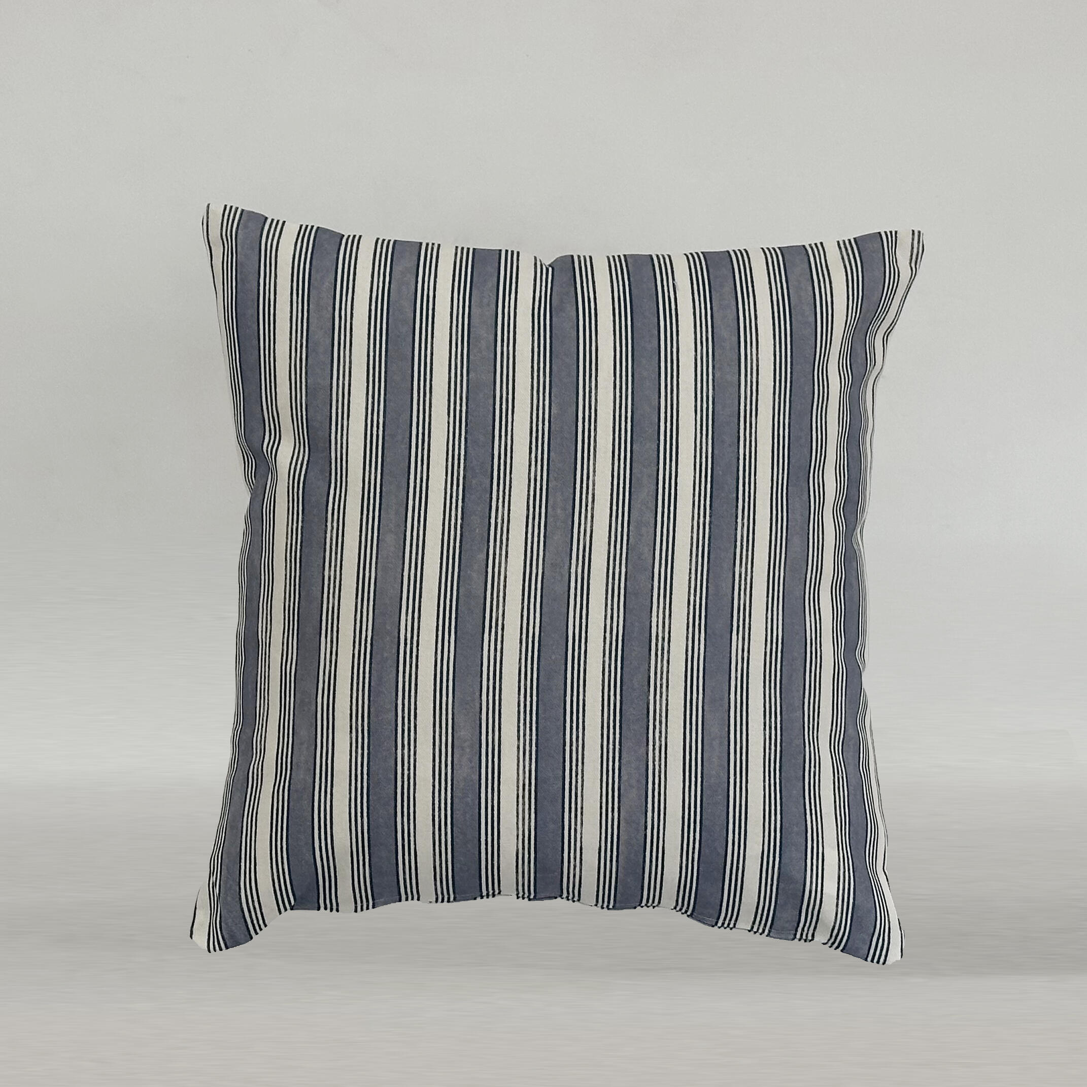 Este cojín cuadrado con un estampando de rayas en tonos azulados, aportará estilo, diseño y color a tu hogar. Simula la estética marinera y mediterranea de la costa y es de algodón 100%. Tiene le mismo diseño en ambas caras. Medidas 45x45 cms. Diseñado y fabricado en españa