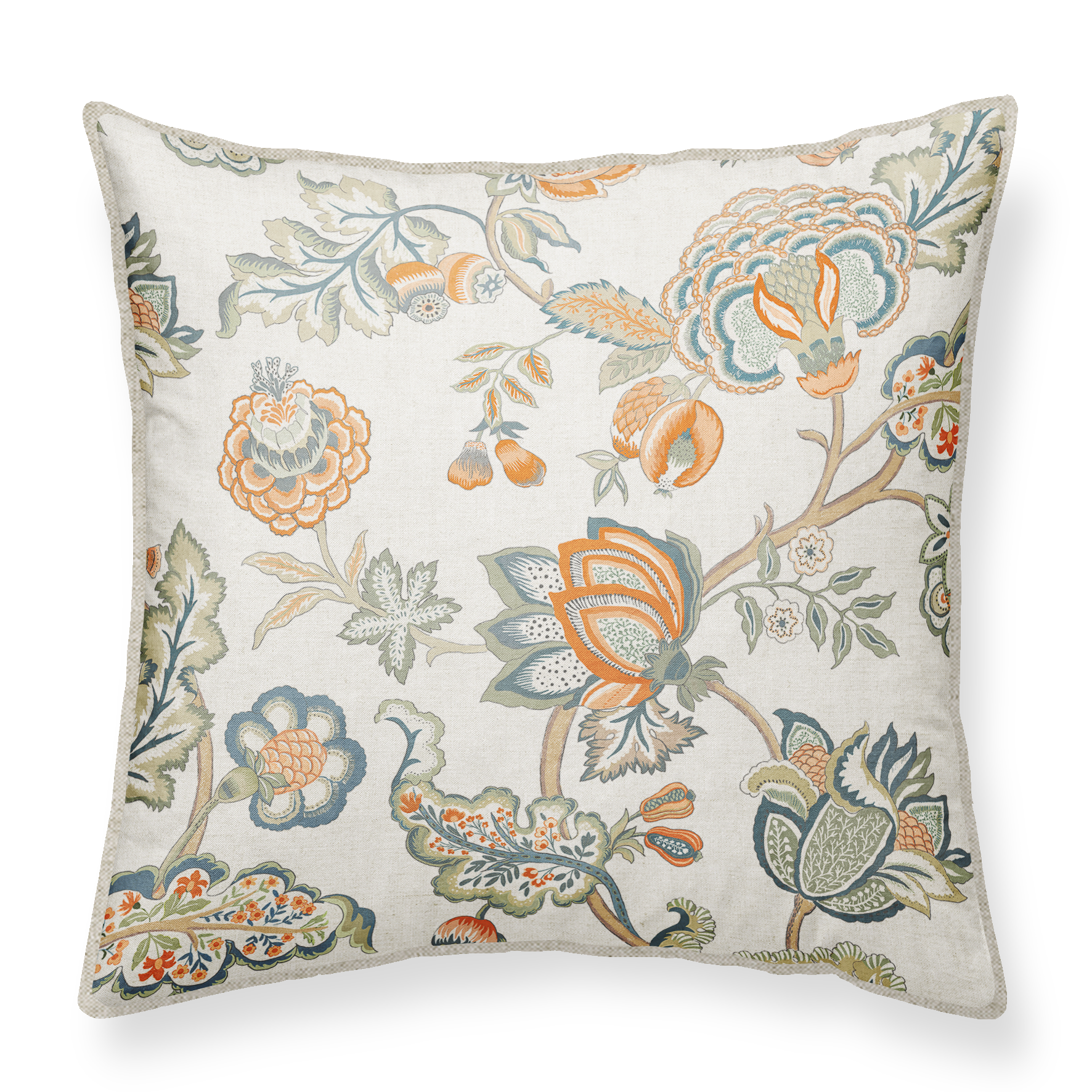 Cojin decorativo cuadrado estampado flores con fondo azul y otra cara blanco 50x50 con cremallera 85%algodon 15%lino. Certificado OEKO-TEX. Lavar a 30ºc.
