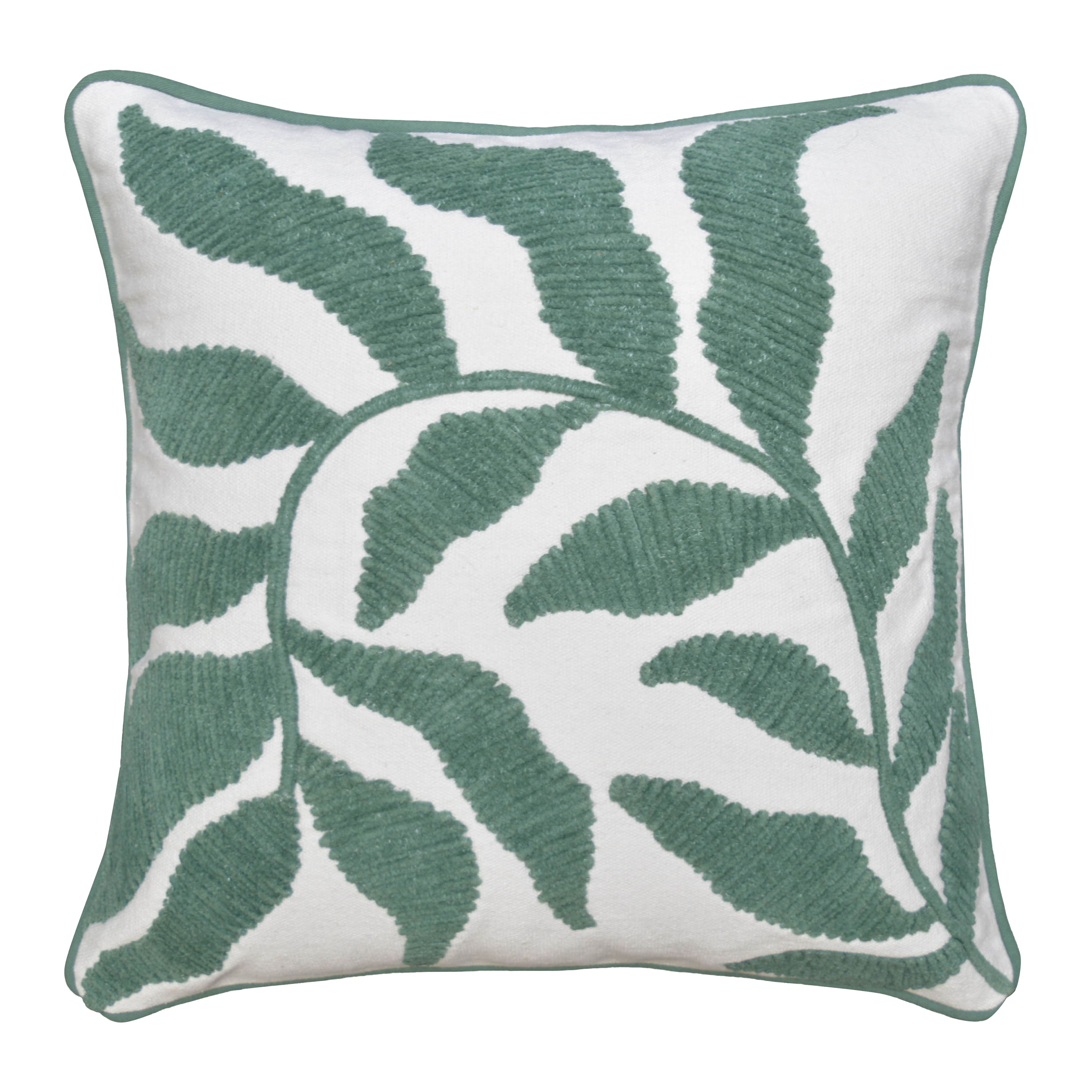Cojín decorativo cuadrado Kannan Kelp chenilla planta blanco y verde 45x45cm